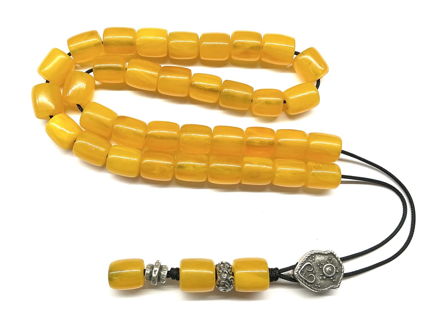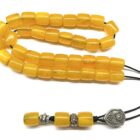 Χειροποίητο αρωματικό κομπολόι από χάντρες Λιβάνι σε σχήμα βαρελάκι με κίτρινο χρώμα .