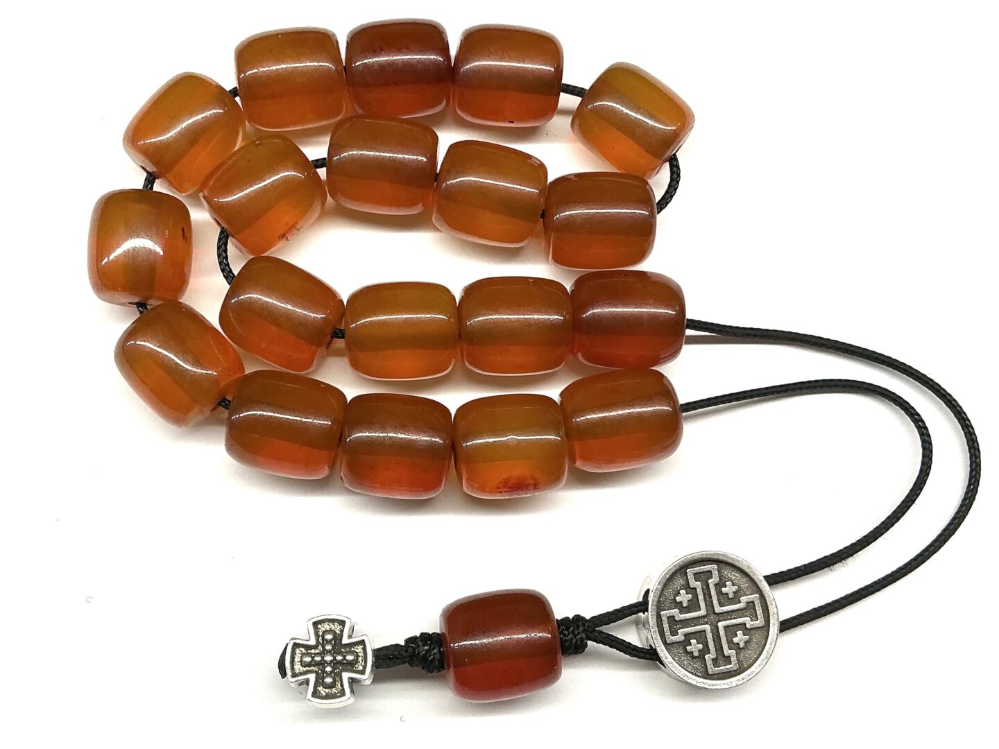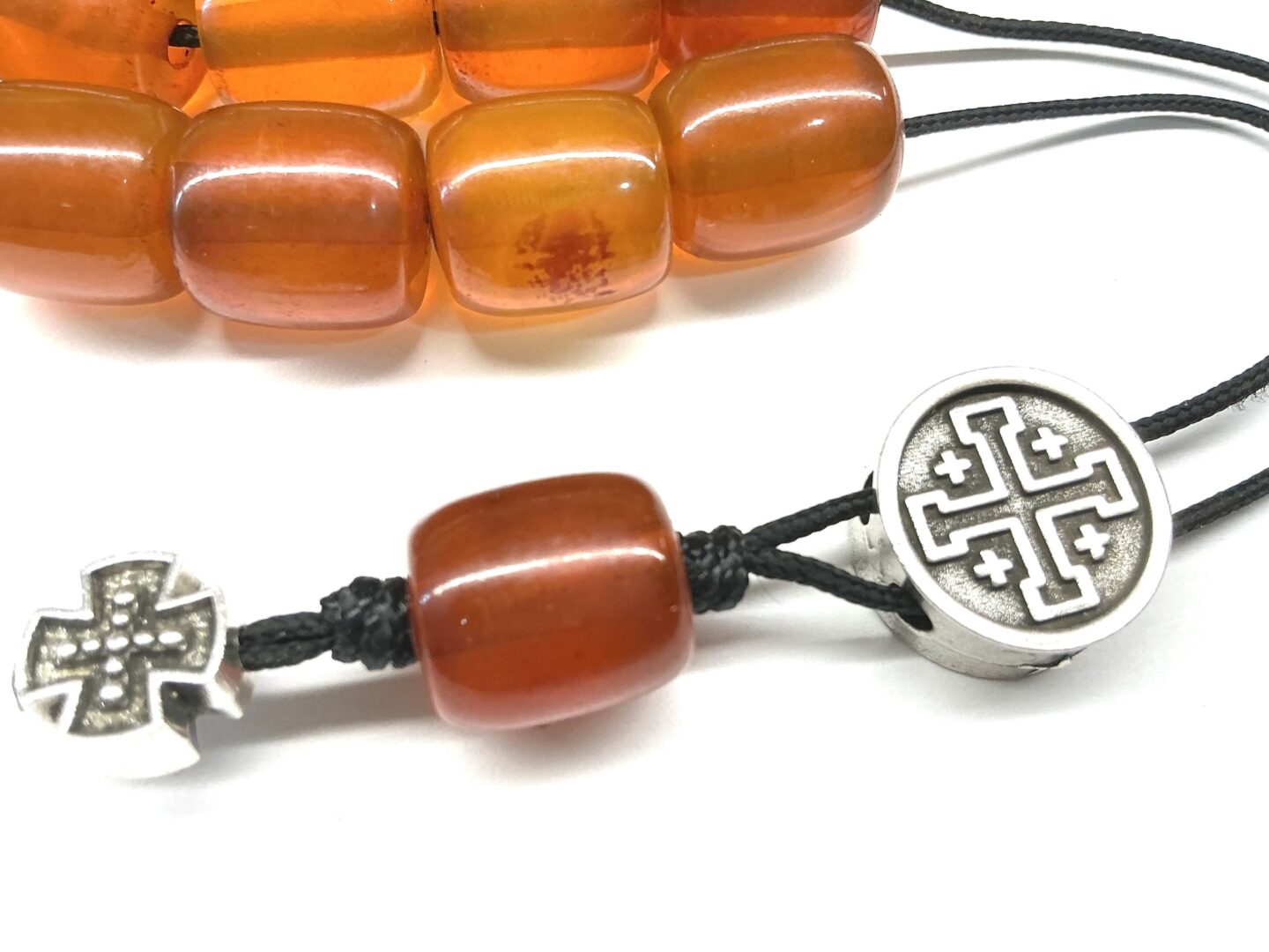 Δεμένο με 19 + 1 χάντρες , θυρεό και μεταλλική χάντρα σταυρού στο τελείωμα .