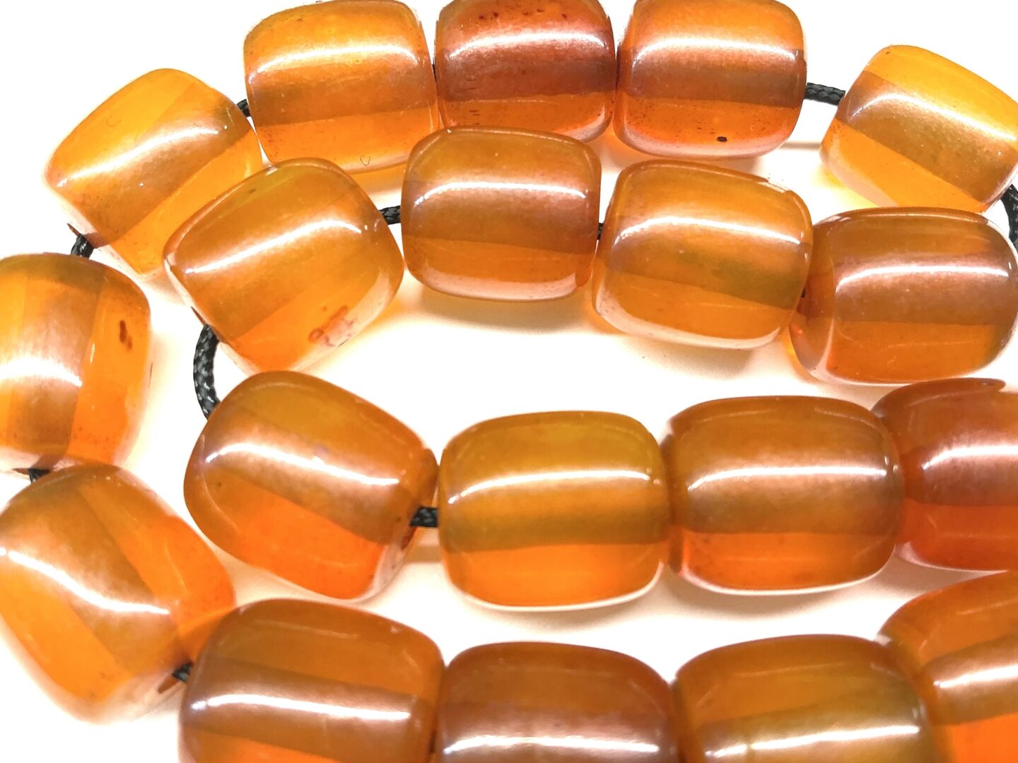 Χειροποίητο αρωματικό κομπολόι από χάντρες Λιβάνι σε σχήμα βαρελάκι με πορτοκάλι χρώμα .
