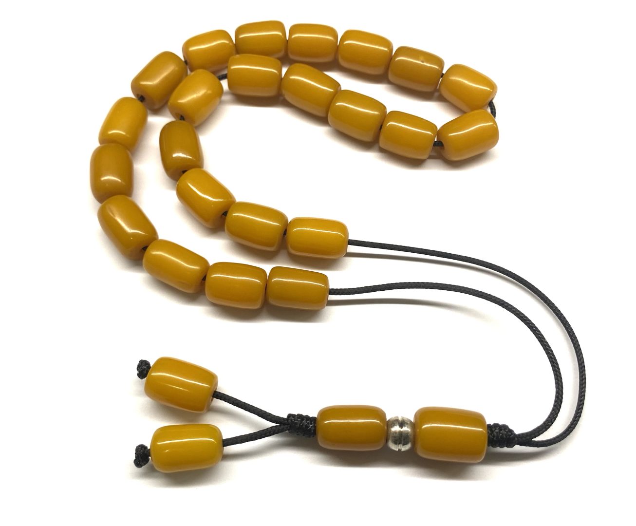 Χειροποίητο αρωματικό κομπολόι από χάντρες Λιβάνι σε σχήμα βαρελάκι με κροκί χρώμα.