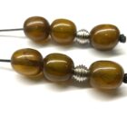 Χειροποίητο αρωματικό μπεγλέρι από χάντρες Λιβάνι σε σχήμα βαρελάκι σε καφέ διαυγές χρώμα.