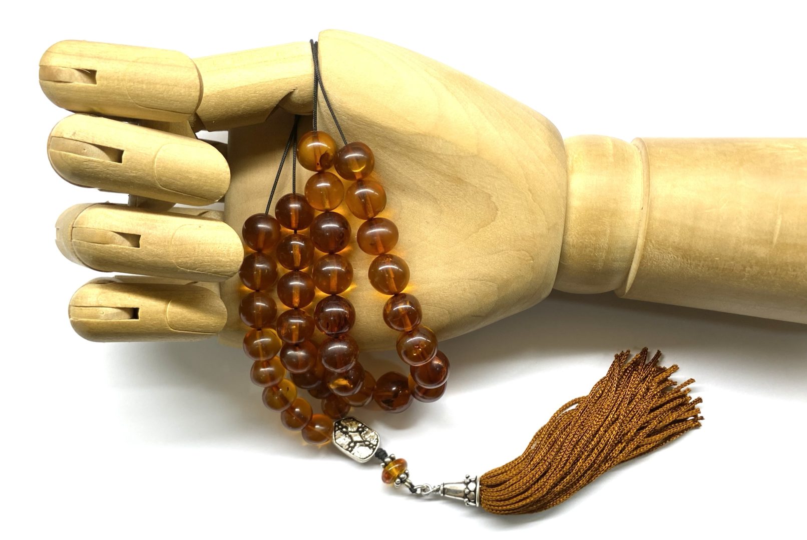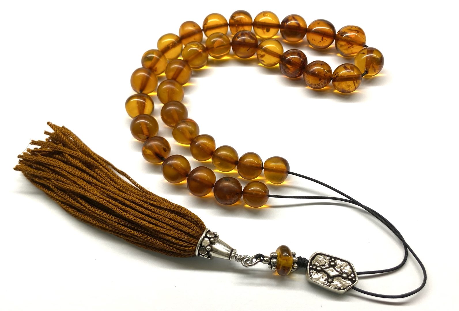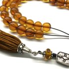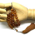 Χειροποίητο κομπολόι 33άρι από ατόφιο Κεχριμπάρι Βαλτικής κονιάκ σε στρογγυλό σχήμα .