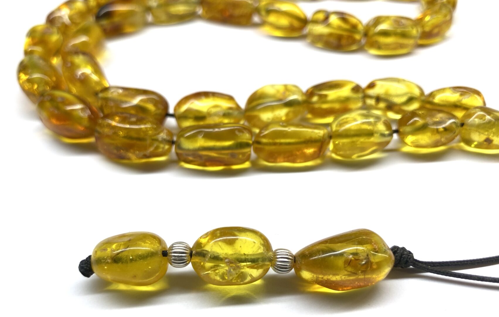 Χειροποίητο κομπολόι 33άρι από ατόφιο Κεχριμπάρι Βαλτικής χειροποίητης κοπής, βότσαλο.