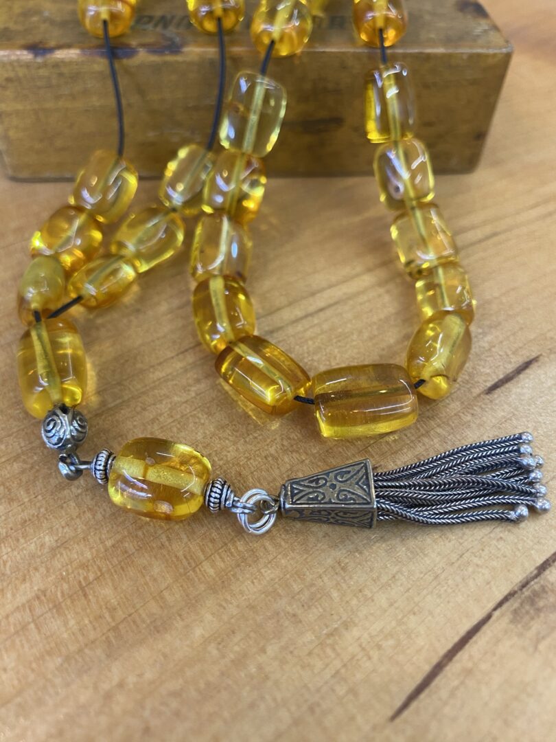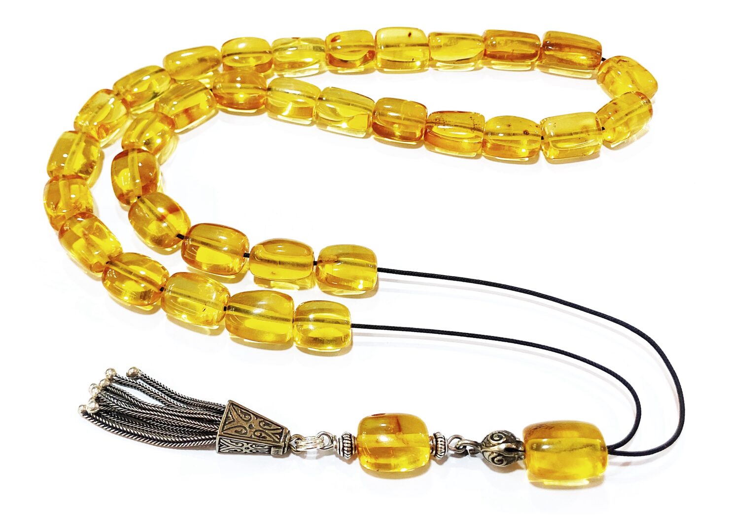 Χειροποίητο κομπολόι 33άρι από ατόφιο Κεχριμπάρι Βαλτικής διαυγές χειροποίητης κοπής.