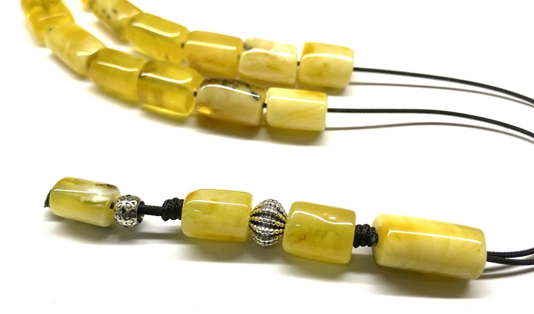 Χειροποίητο κομπολόι 33άρι από ατόφιο Κεχριμπάρι Βασιλικό χειροποίητης κοπής σωληνάκι .