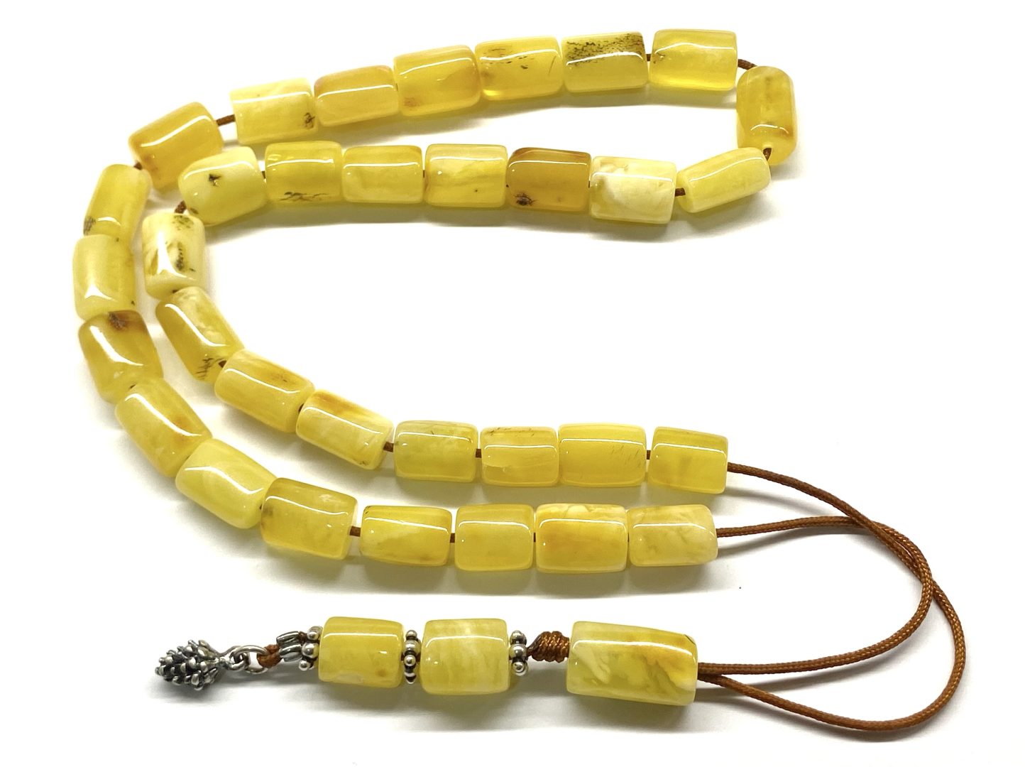 Χειροποίητο κομπολόι 33άρι από ατόφιο Κεχριμπάρι Βασιλικό χειροποίητης κοπής σωληνάκι .