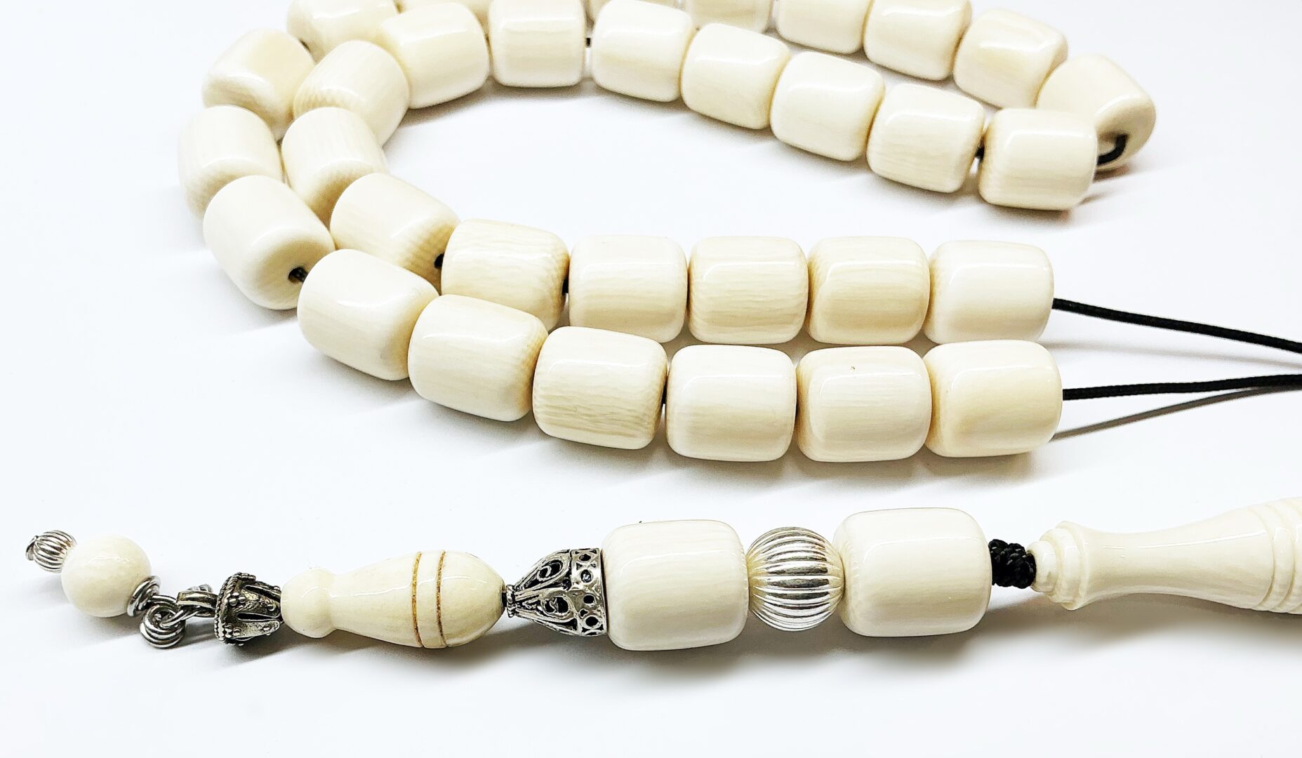 Χειροποίητο κομπολόι 33άρι από Ελεφαντόδοντο παλιό σε άριστη κατάσταση σε σχήμα βαρελάκι.