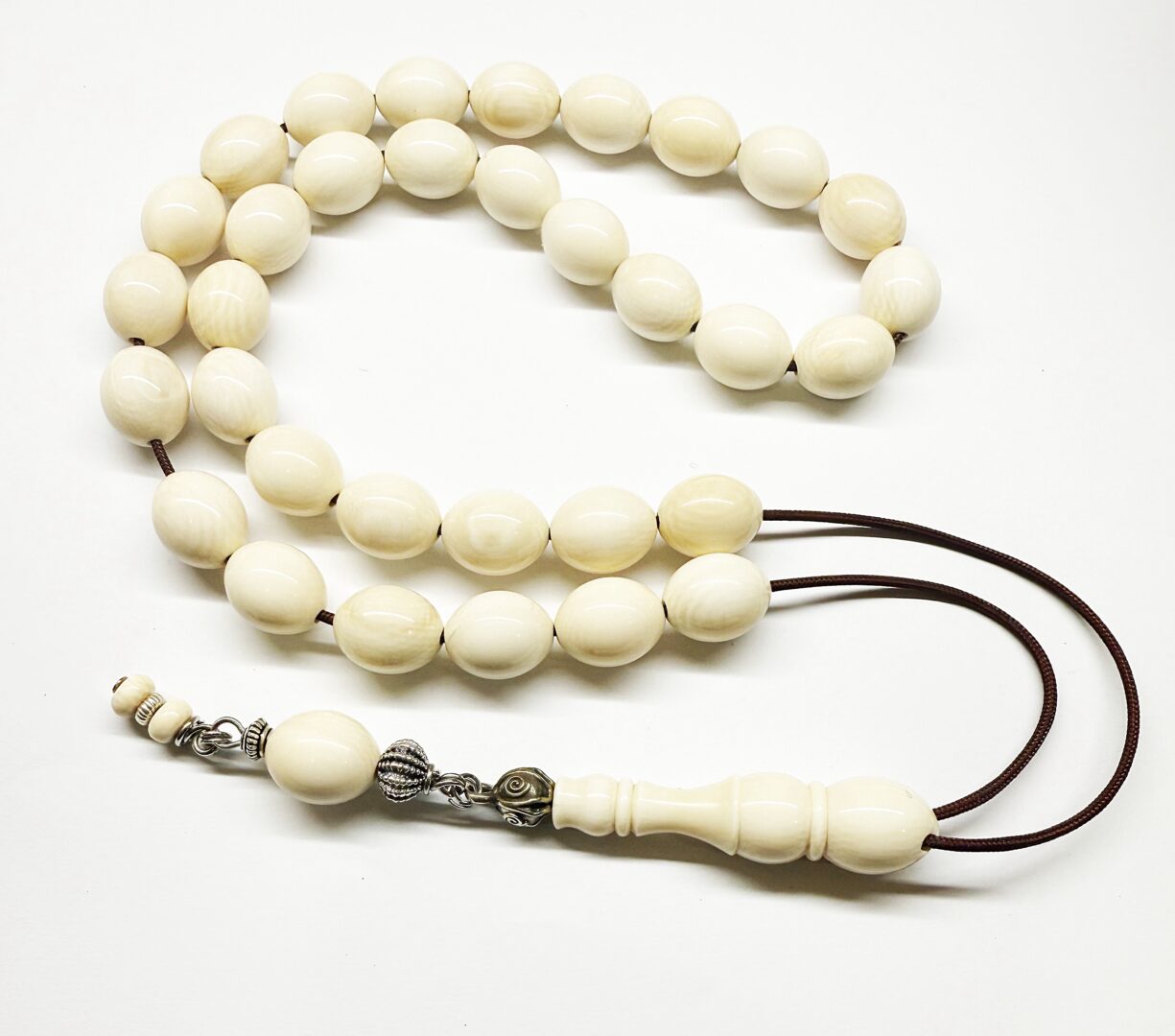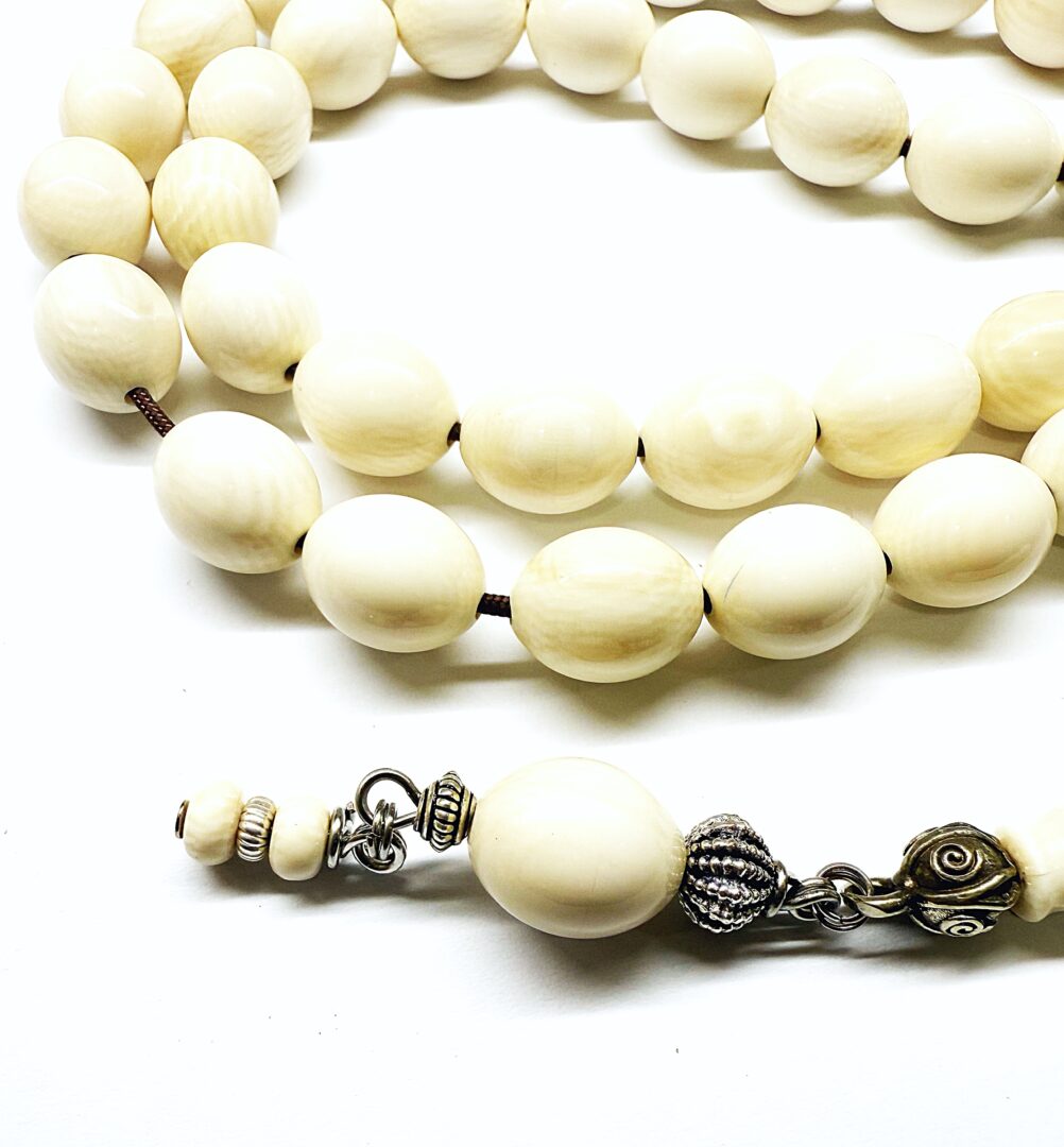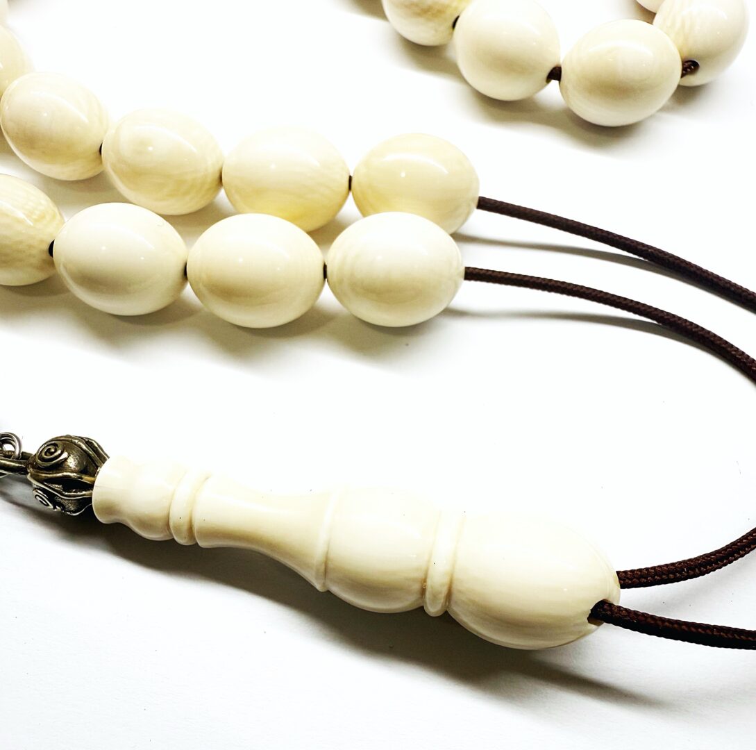 Χειροποίητο κομπολόι 33άρι από Ελεφαντόδοντο παλιό σε άριστη κατάσταση σε σχήμα ελιά .