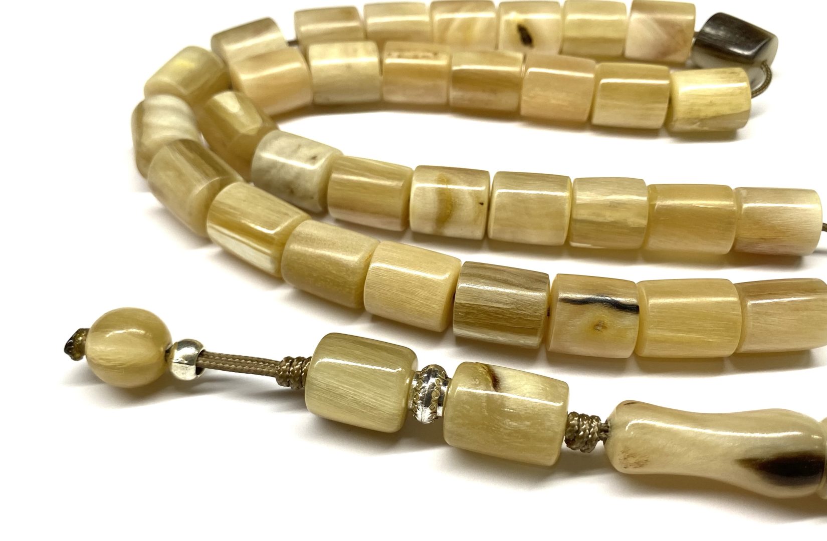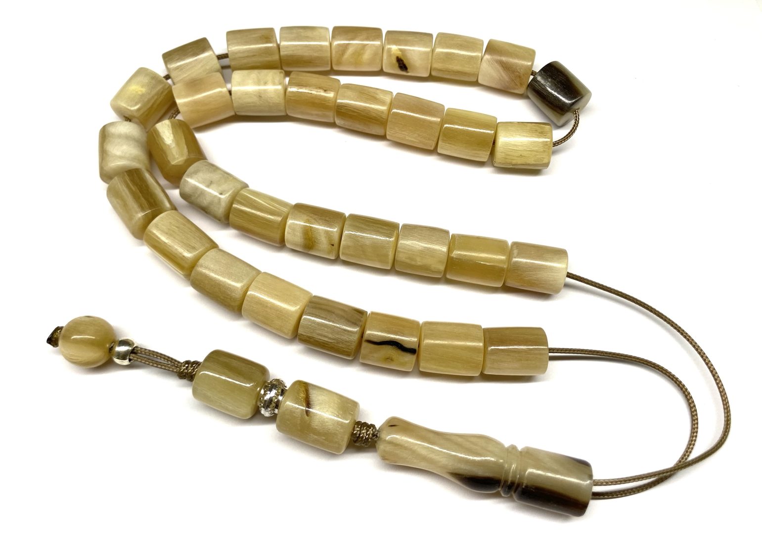 Χειροποίητο κομπολόι 33άρι από κέρατο κατσίκας σε σχήμα βαρελάκι.