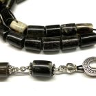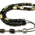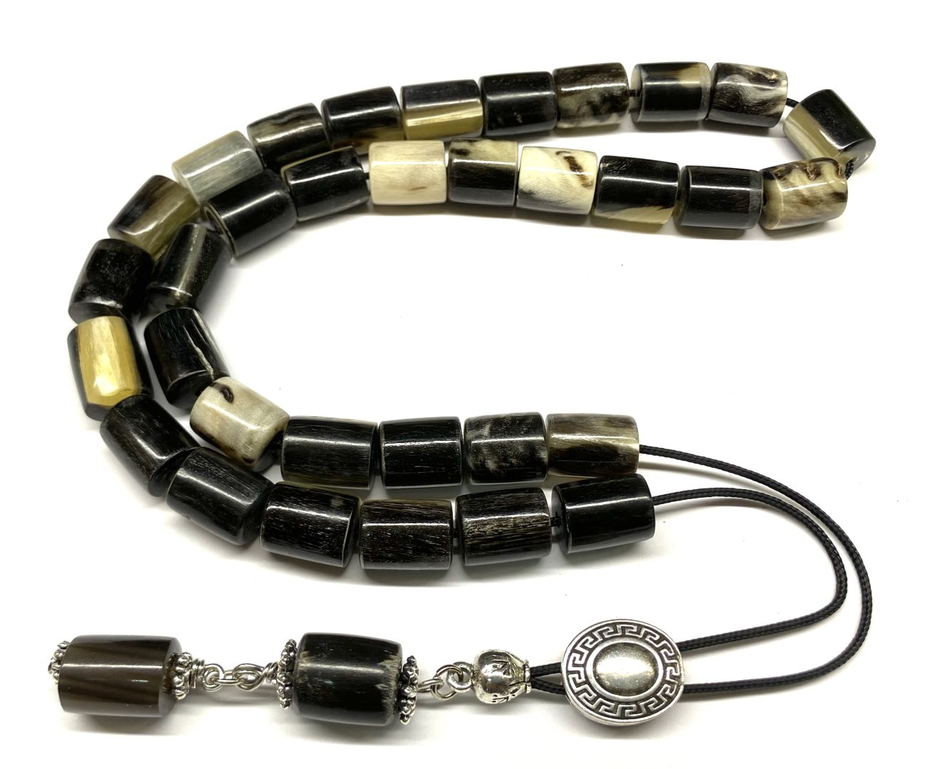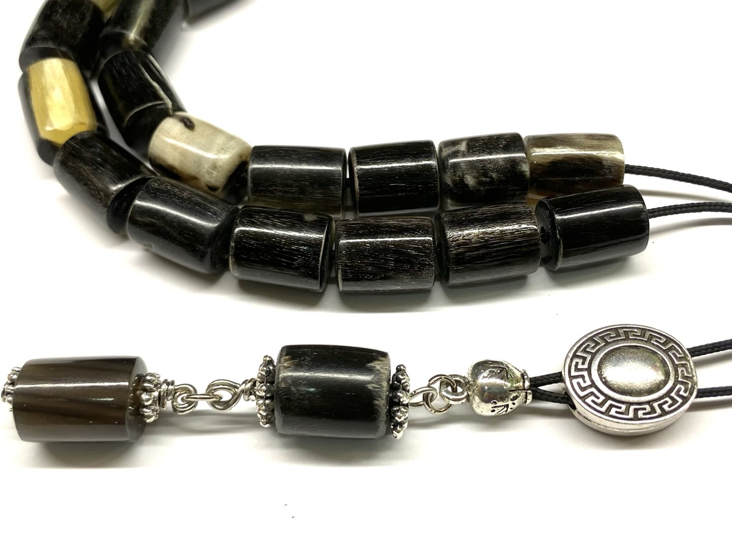 Χειροποίητο κομπολόι 33άρι από κέρατο κατσίκας σκουρόχρωμο σε σχήμα βαρελάκι.