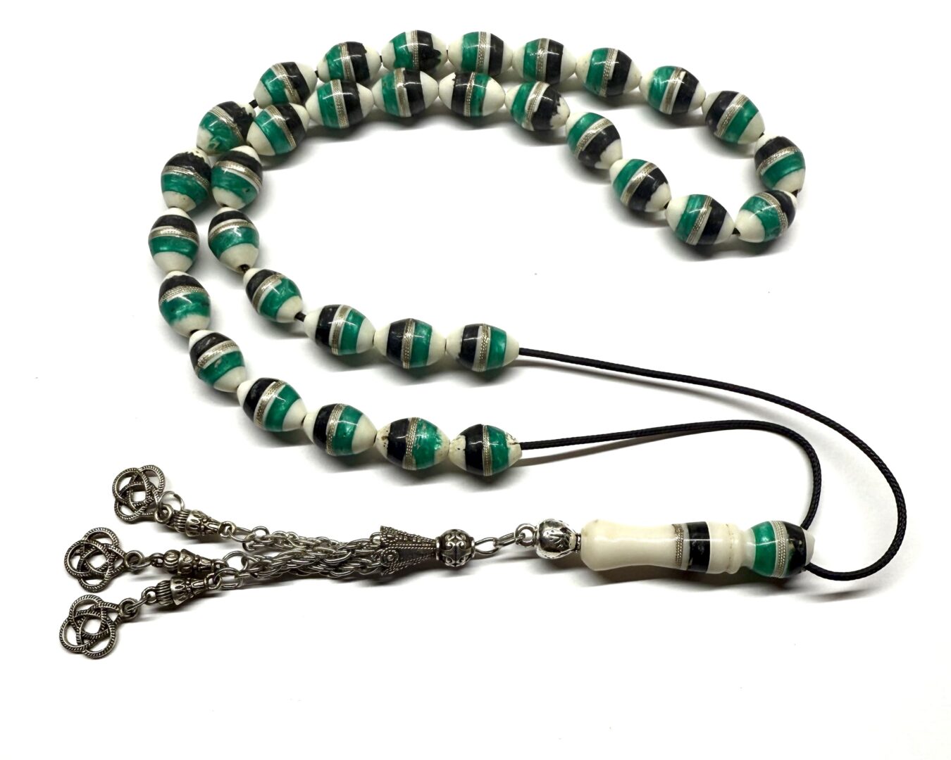 Κομπολόι 33άρι από Κόκκαλο καμήλας κεντημένο με Ασήμι και στολισμένο με ένθετα CB 218
