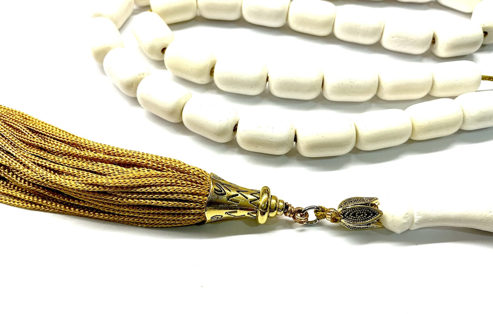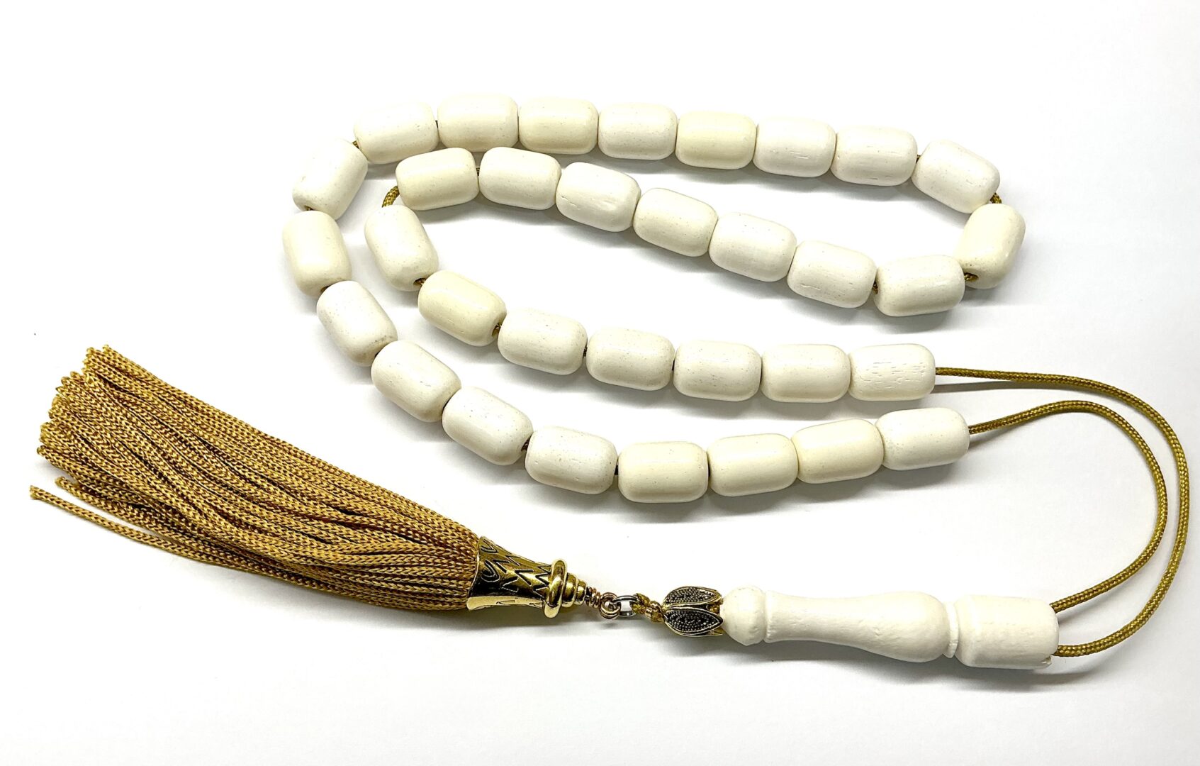 Δεμένο με 33 χάντρες, παπά και πλούσια χρυσή φούντα στο τελείωμα.