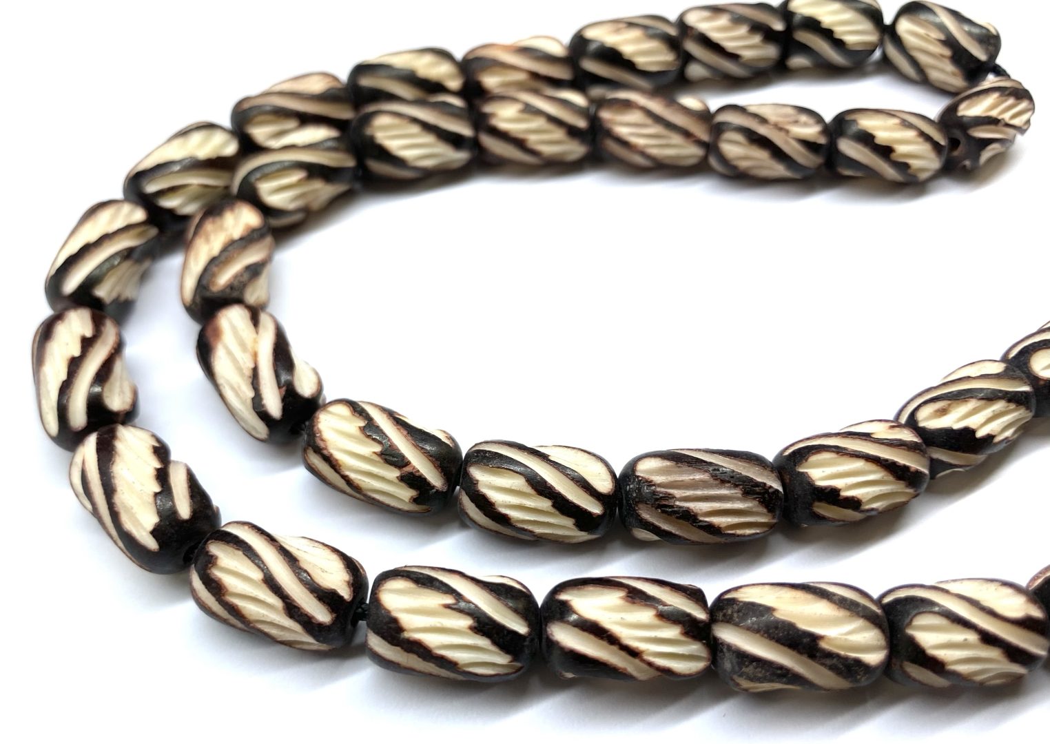Χειροποίητο 33άρι κομπολόι από κόκκαλο καμήλας σκαλιστό και βαμμένο σε σχήμα βαρελάκι .