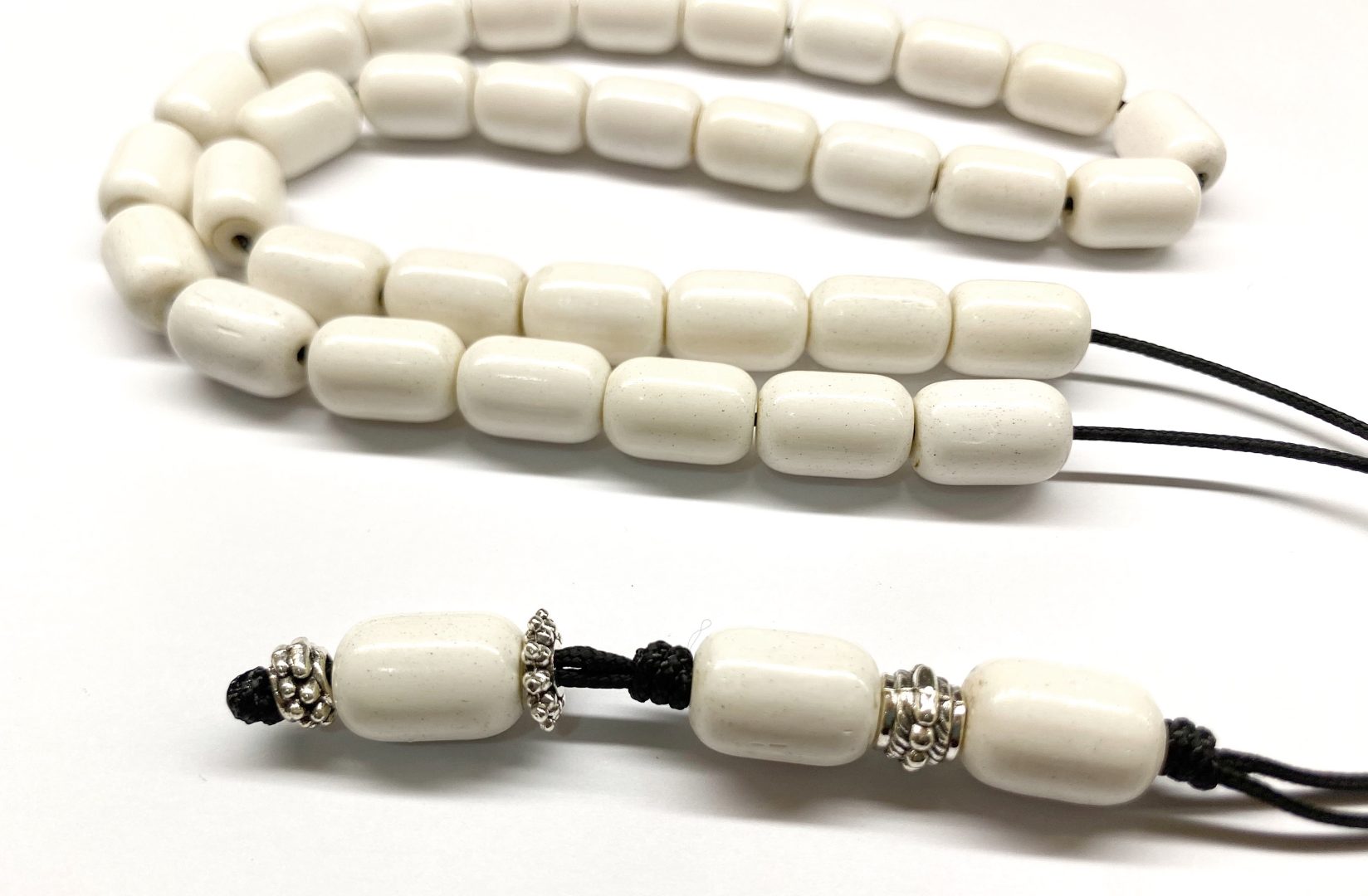 Χειροποίητο κομπολόι με 33 χάντρες από κόκκαλο καμήλας σε σχήμα βαρελάκι .