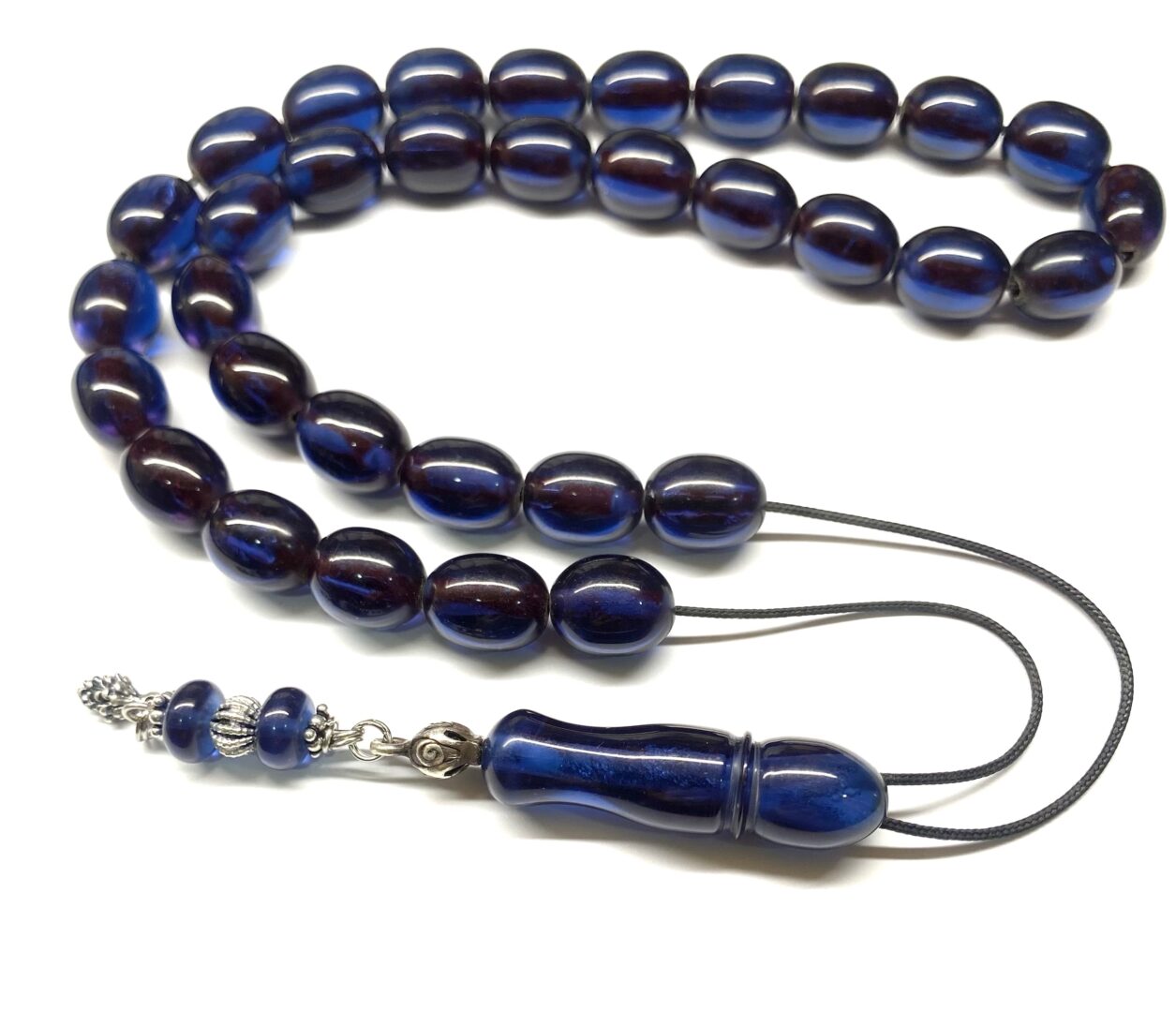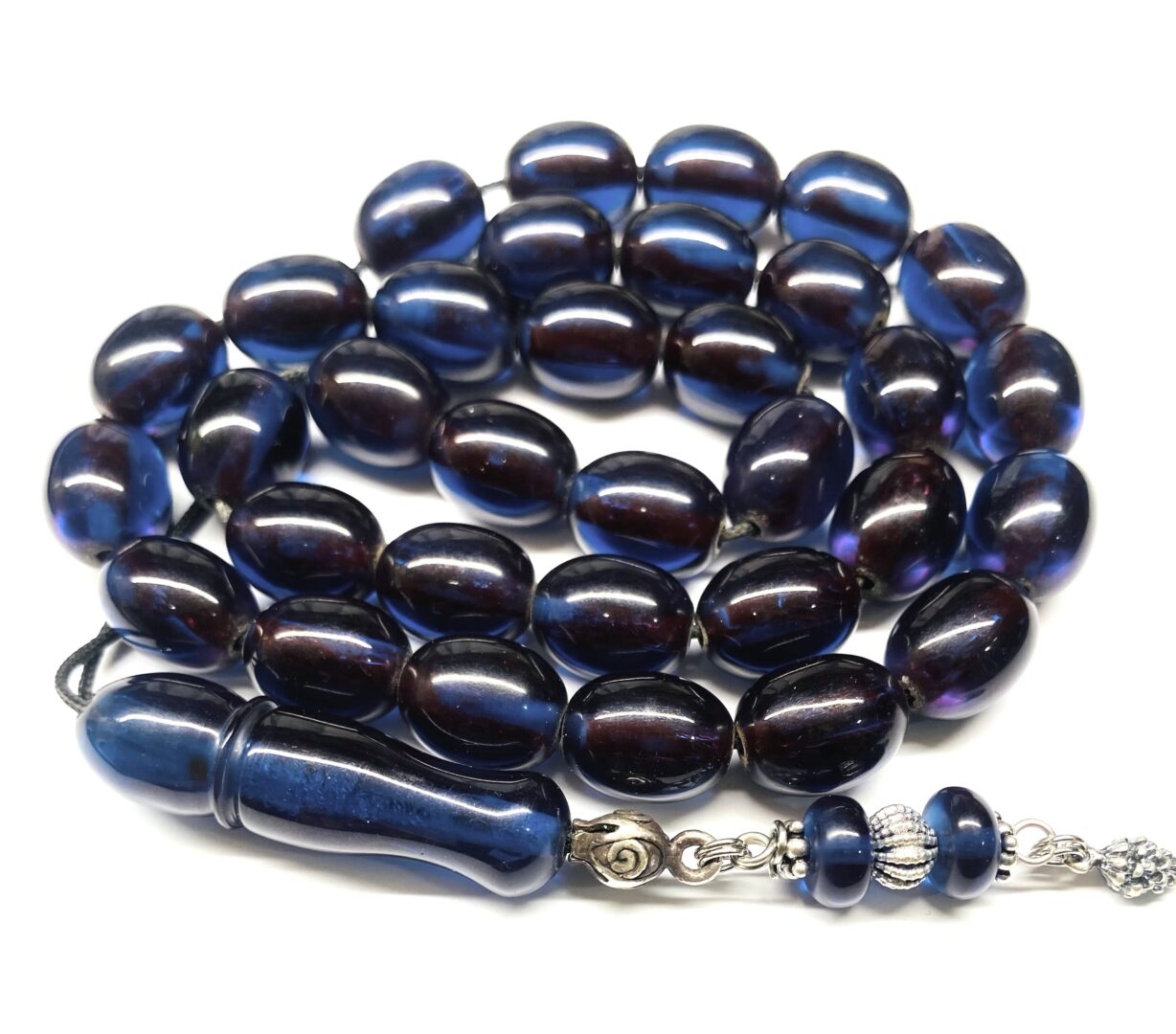 Χειροποίητο σπάνιο κομπολόι 33άρι από Μαστίχα Αιγύπτου νέας κοπής σε σπάνιο ιδιαίτερο χρώμα, πετρόλ με ίριδα μπορντό .