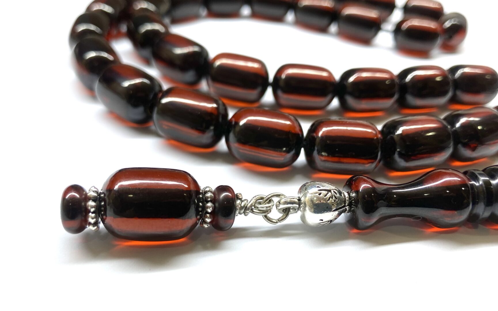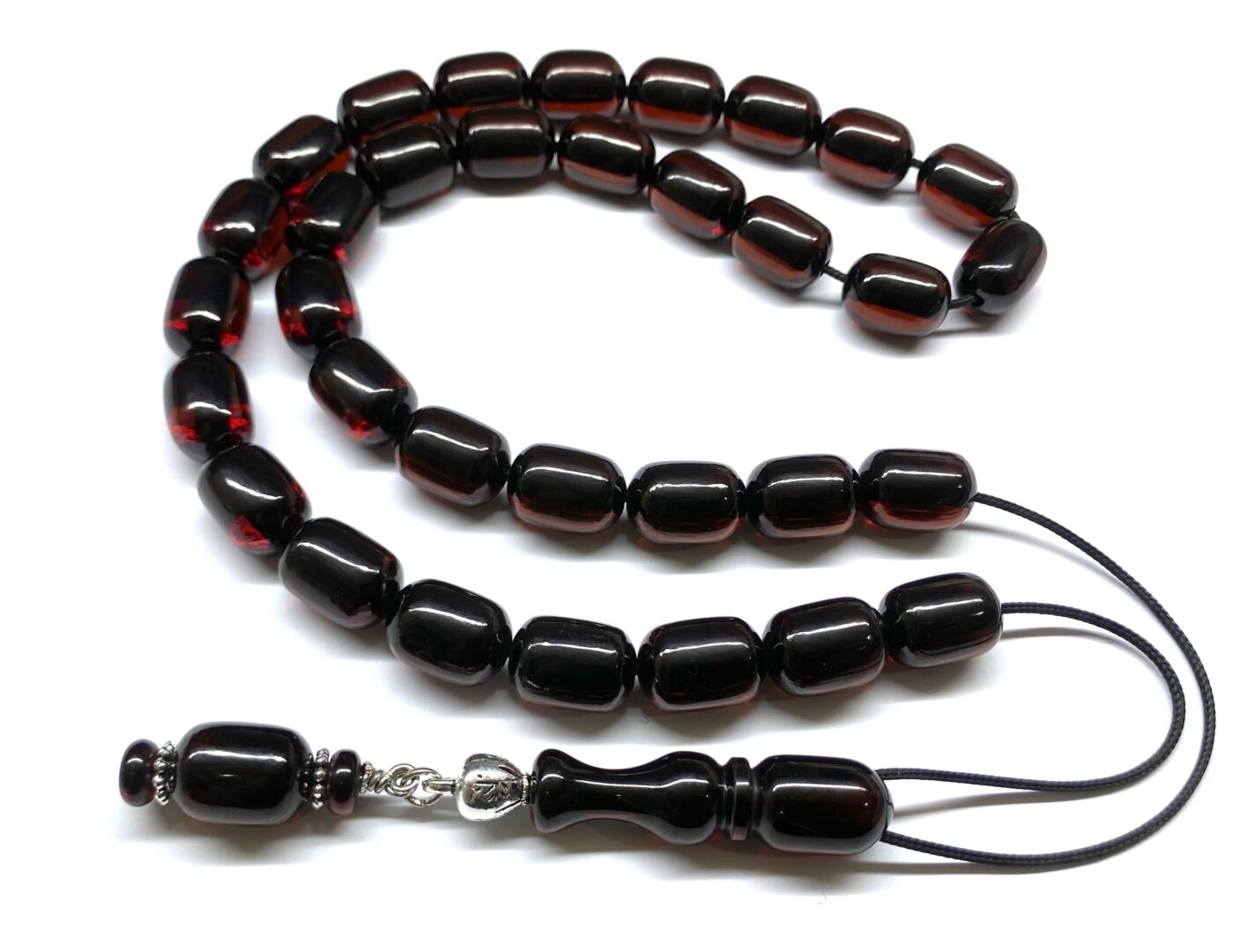 Χειροποίητο κομπολόι 33άρι από Μαστίχα Αιγύπτου νέας κοπής στο χρώμα του Κεχριμπαριού σκούρο κονιάκ.