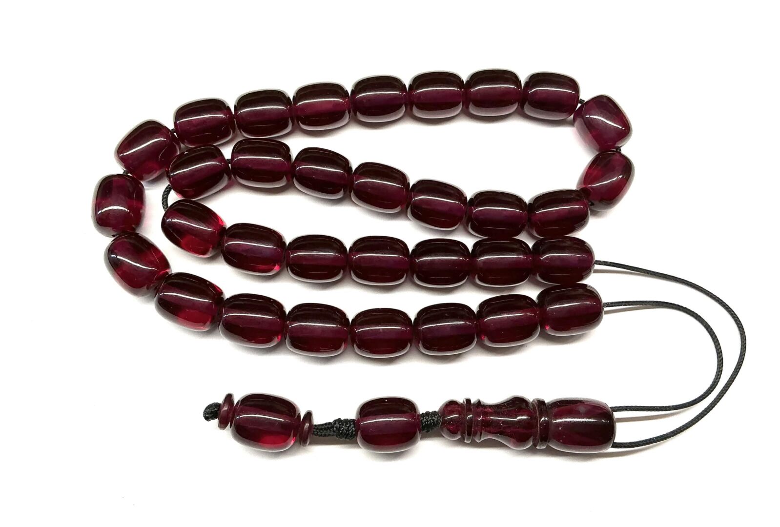 Χειροποίητο κομπολόι 33άρι από Μαστίχα Αιγύπτου νέας κοπής σε βυσσινί χρώμα .