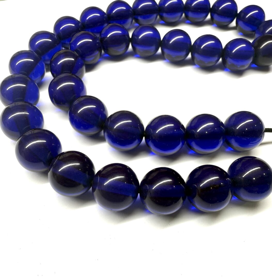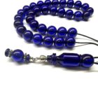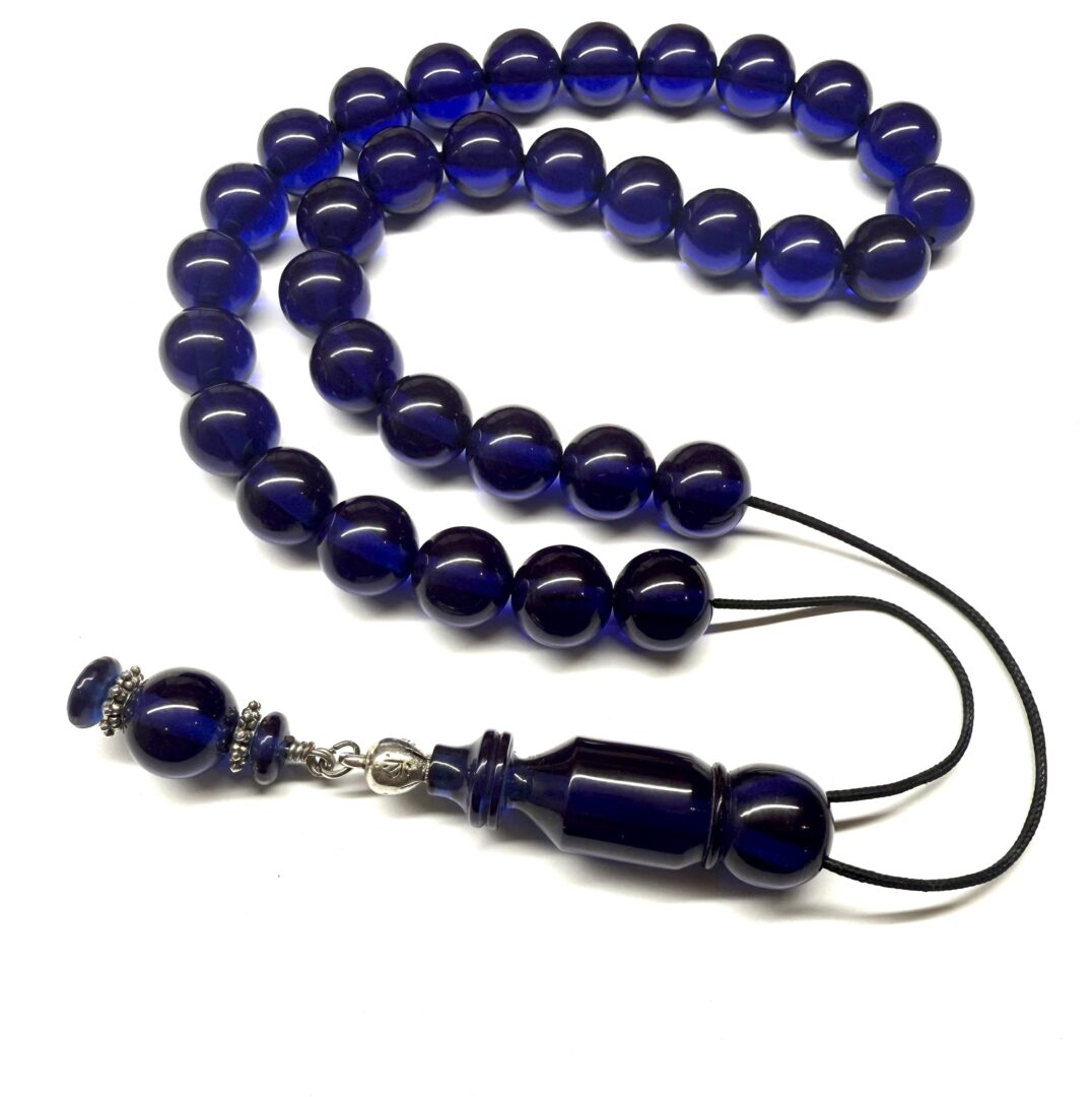 Χειροποίητο κομπολόι 33άρι από Μαστίχα Περσίας νέας κοπής σε μπλε ρουά χρώμα με στρογγυλό σχήμα.