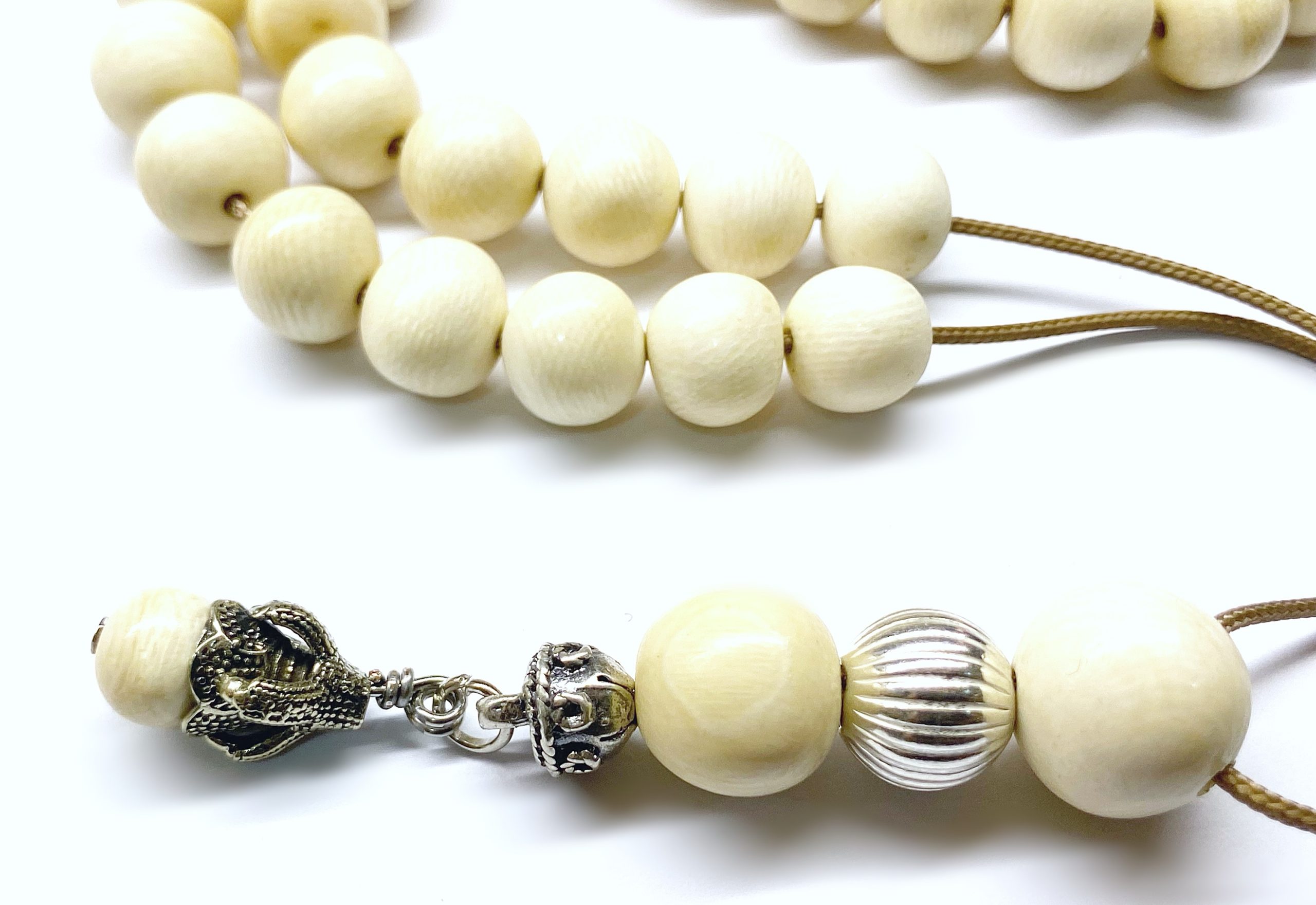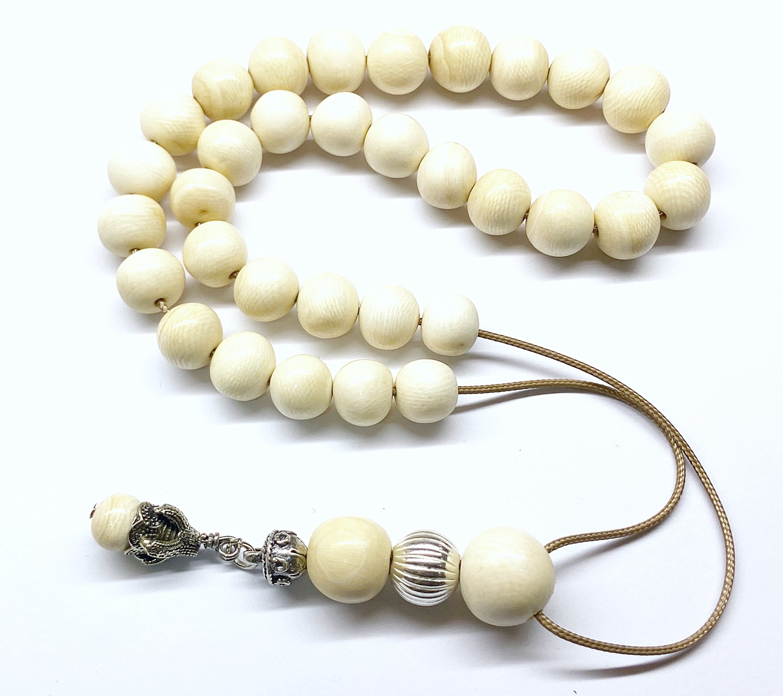 Χειροποίητο κομπολόι 33άρι από παλαιό Ελεφαντόδοντο χειροποίητης κοπής σε σχήμα στρογγυλό .