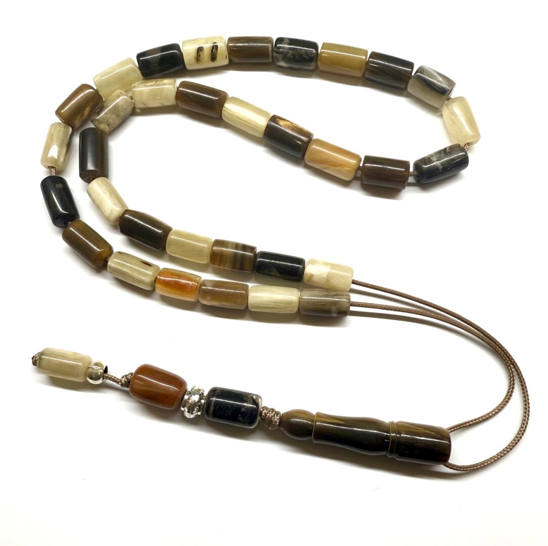 Χειροποίητο 33άρι κομπολόι από κέρατο Νεροβούβαλου και Κατσίκας σε ποικιλία αποχρώσεων .