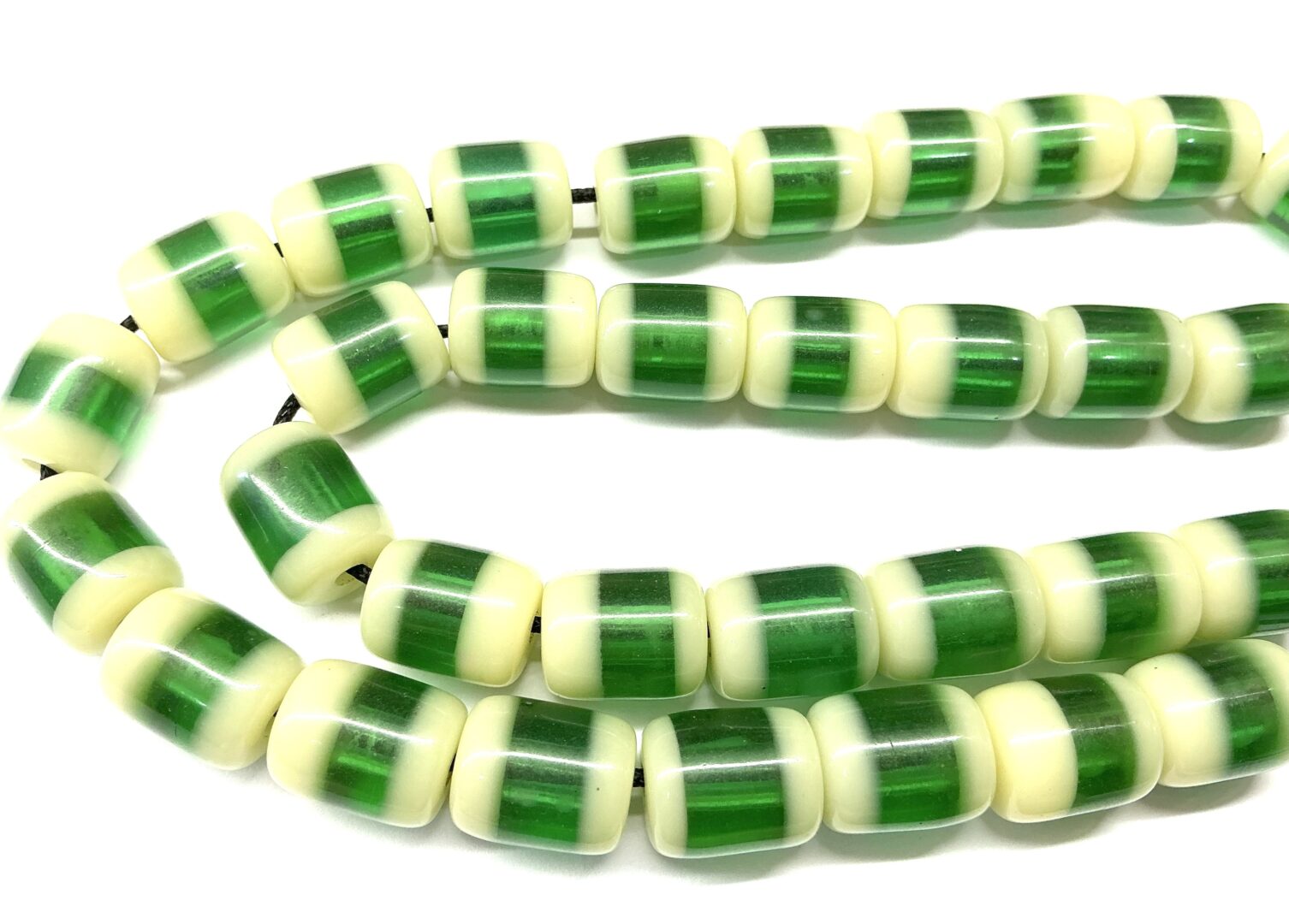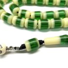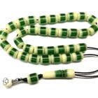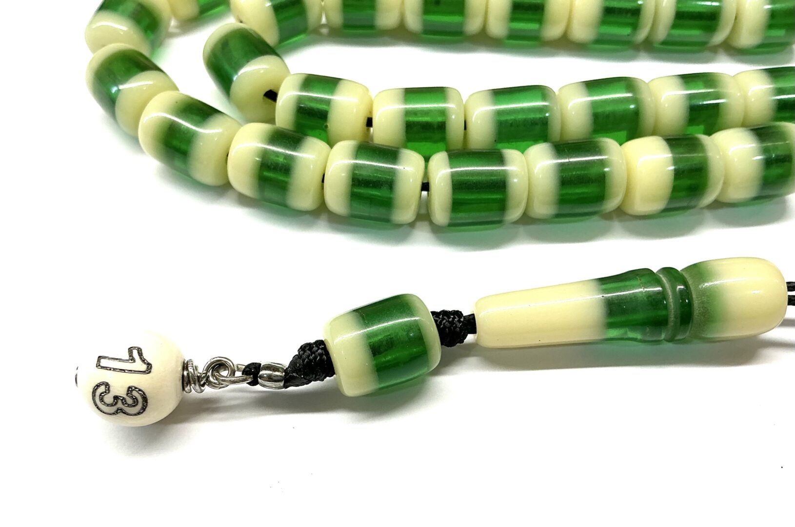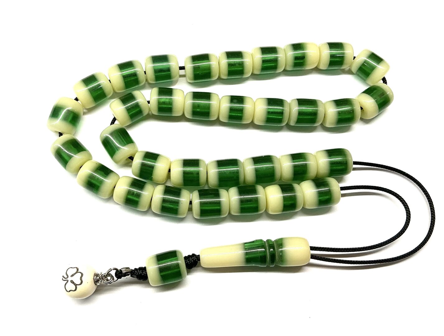 Κομπολόι με 33 χάντρες από πράσινη λευκή ρητίνη .