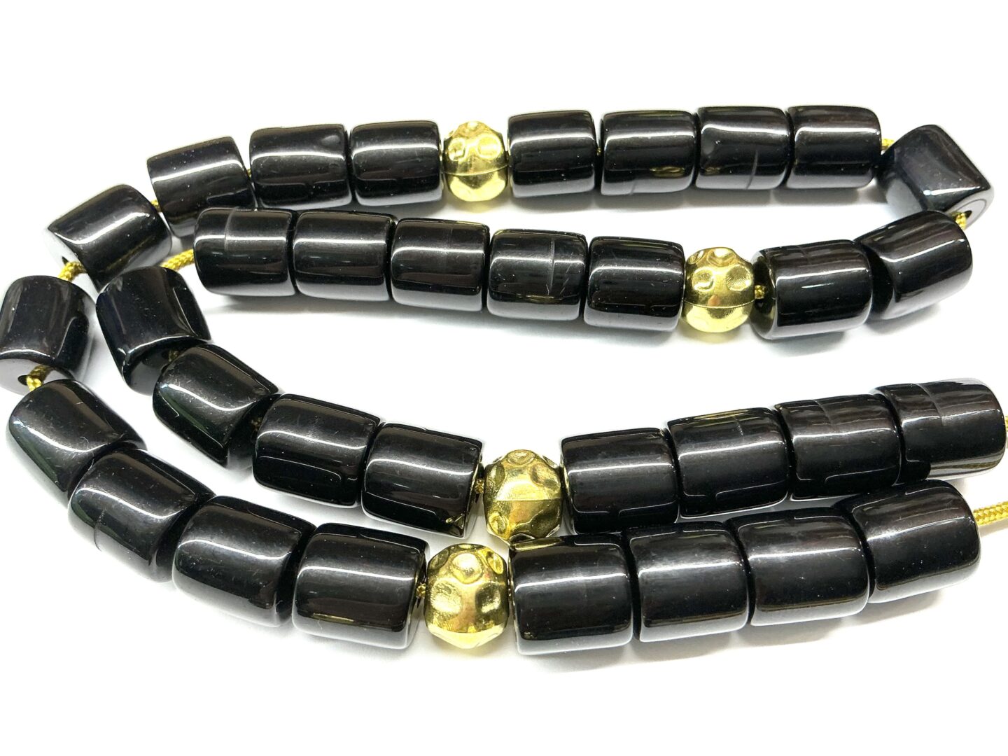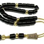 Χειροποίητο κομπολόι 33άρι μαύρο με χάντρες από ρητίνη σε σχήμα βαρελάκι και χρυσές λεπτομέρειες .