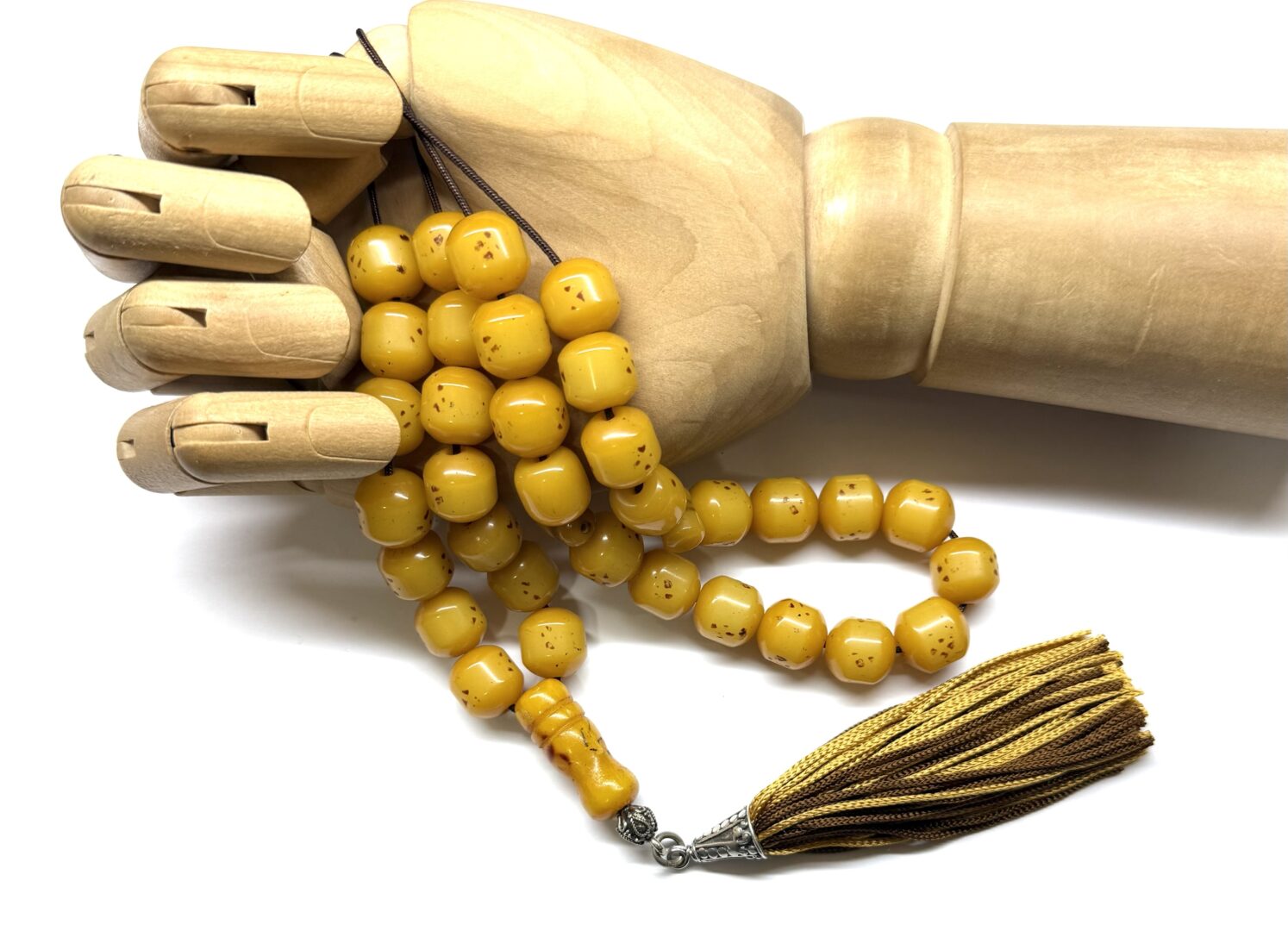 Χειροποίητο 33άρι κομπολόι από Σούντουρους παλαιό σε κίτρινο κροκί χρώμα σε σχήμα βαρελάκι .