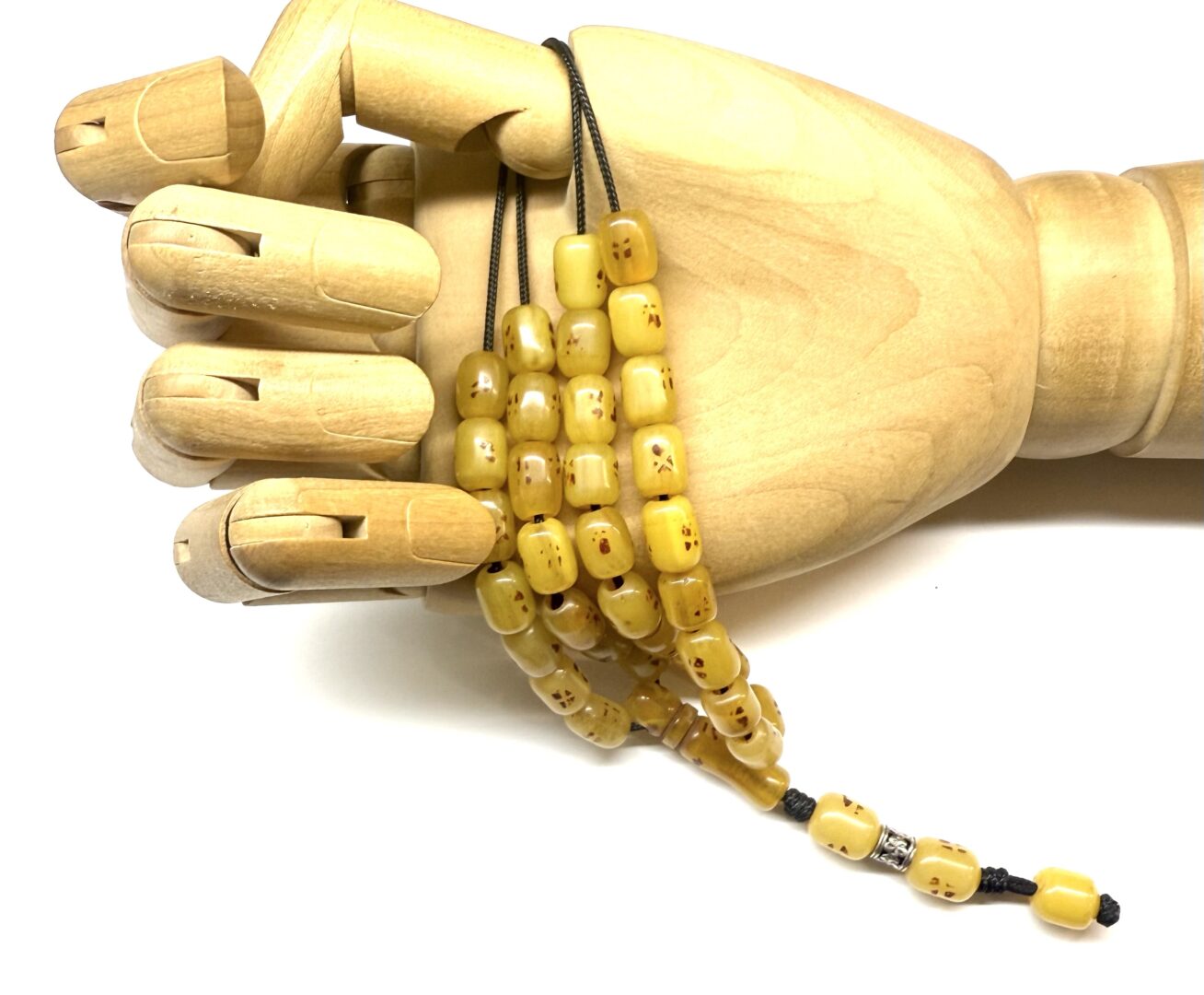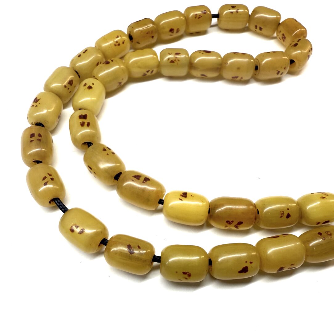 Χειροποίητο 33άρι κομπολόι από Σούντουρους παλαιό σε κίτρινο κροκί χρώμα σε σχήμα βαρελάκι .