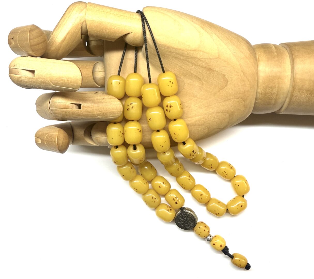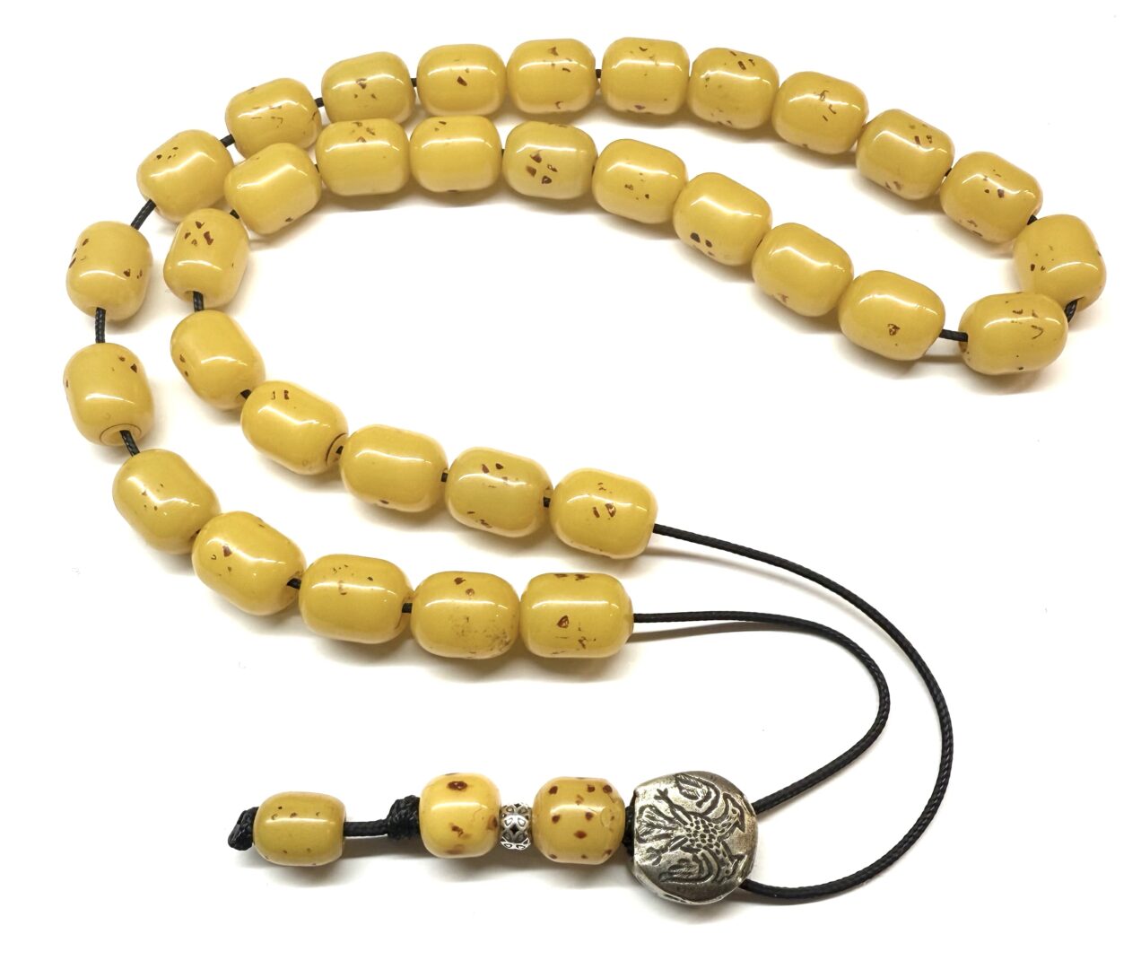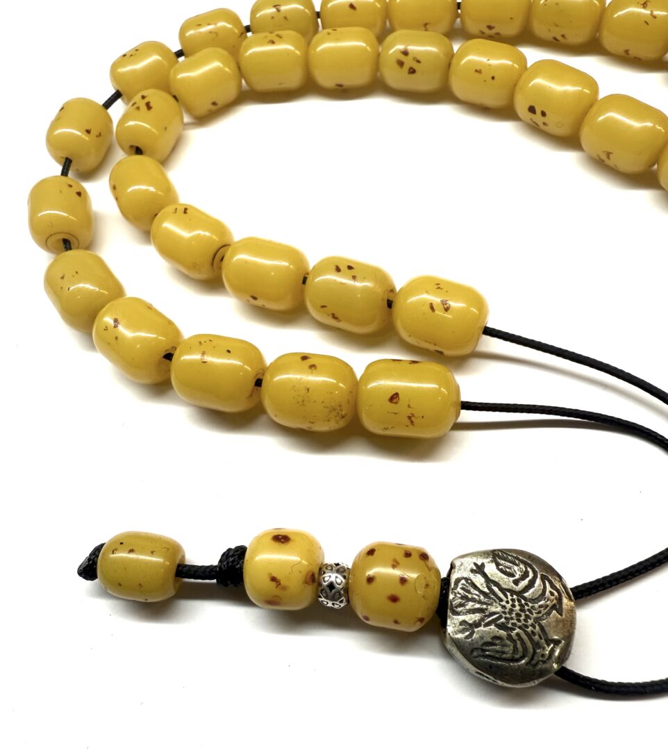 Χειροποίητο 33άρι κομπολόι από Σούντουρους παλαιό σε κίτρινο κροκί χρώμα σε σχήμα βαρελάκι .
