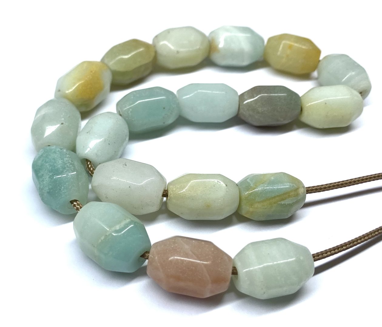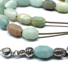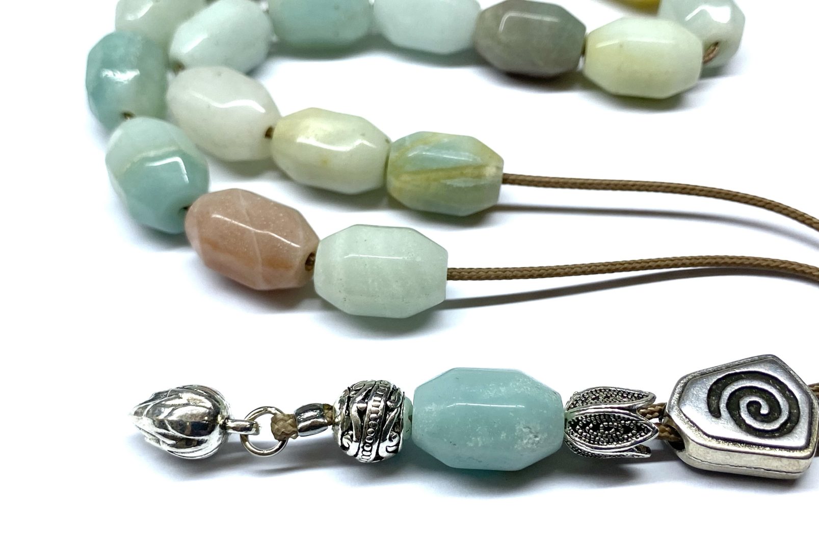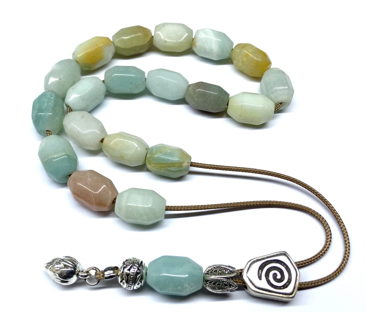 Χειροποίητο κομπολόι από ημιπολύτιμες χάντρες Αμαζονίτη με κοπή ταγιέ σε σχήμα βαρελάκι.
