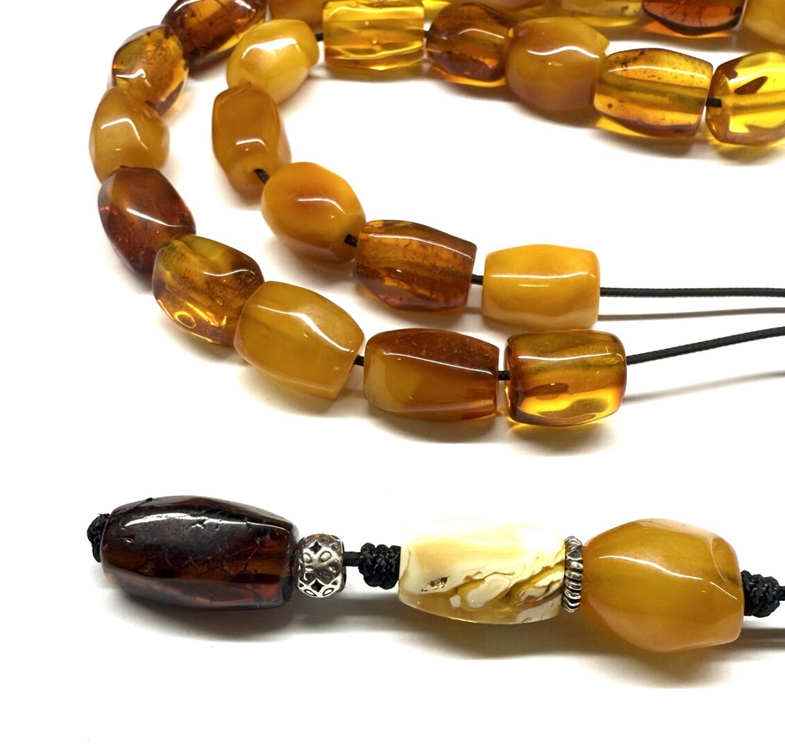Χειροποίητο κομπολόι από ατόφιο Κεχριμπάρι Βαλτικής αντικέ και διαυγές, χειροποίητης κοπής.