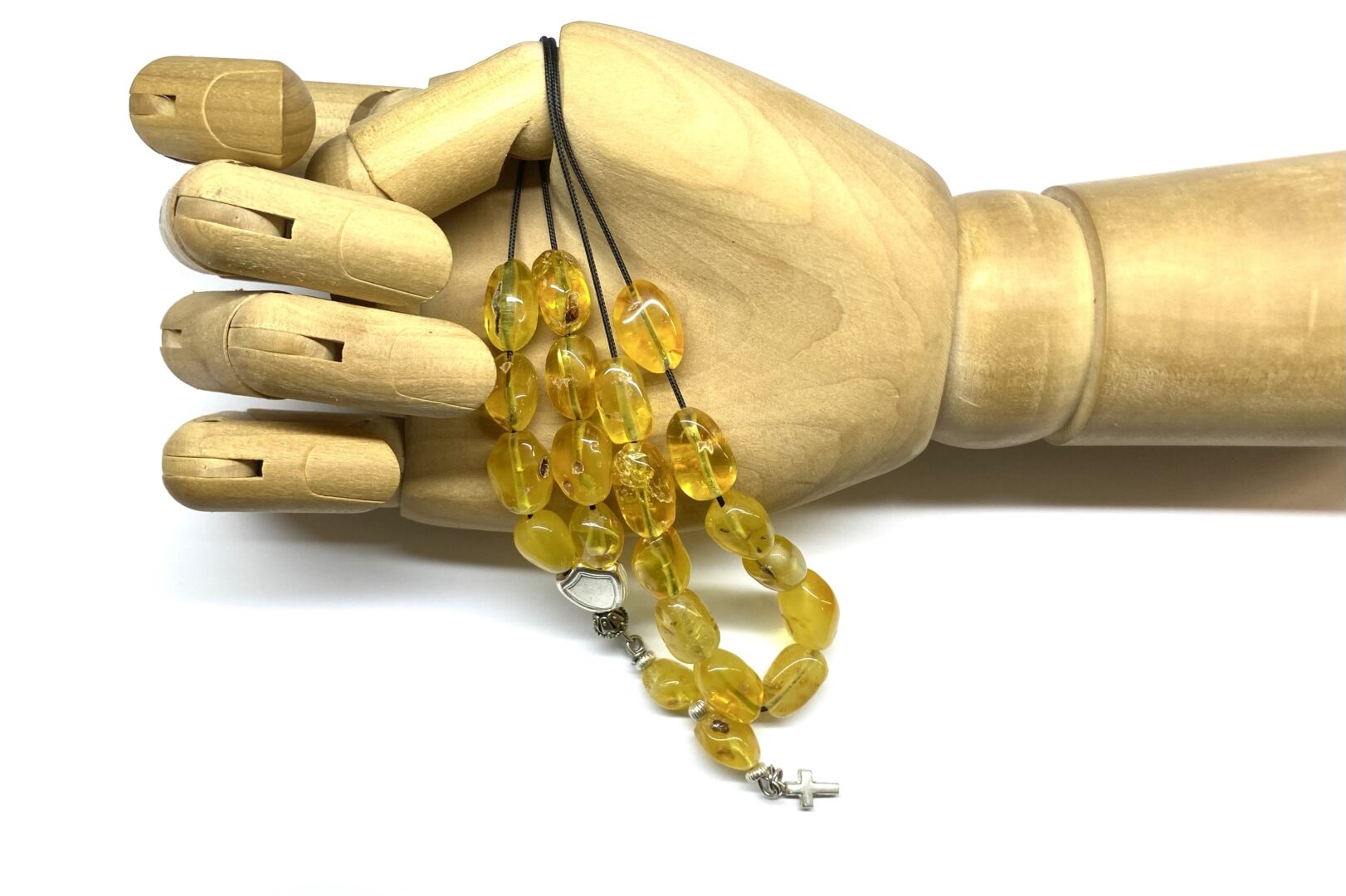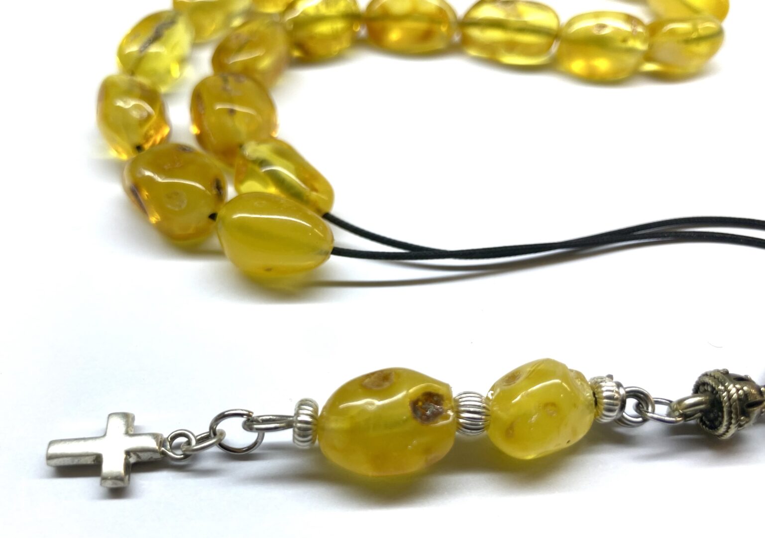 Χειροποίητο κομπολόι από ατόφιο Κεχριμπάρι Βαλτικής, χειροποίητης κοπής, βότσαλο.