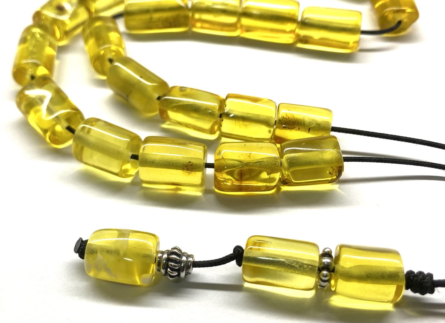 Χειροποίητο κομπολόι από ατόφιο Κεχριμπάρι Βαλτικής διαυγές χειροποίητης κοπής σωληνάκι .