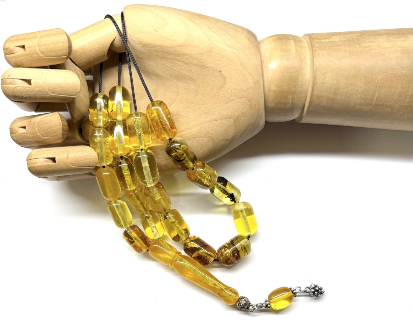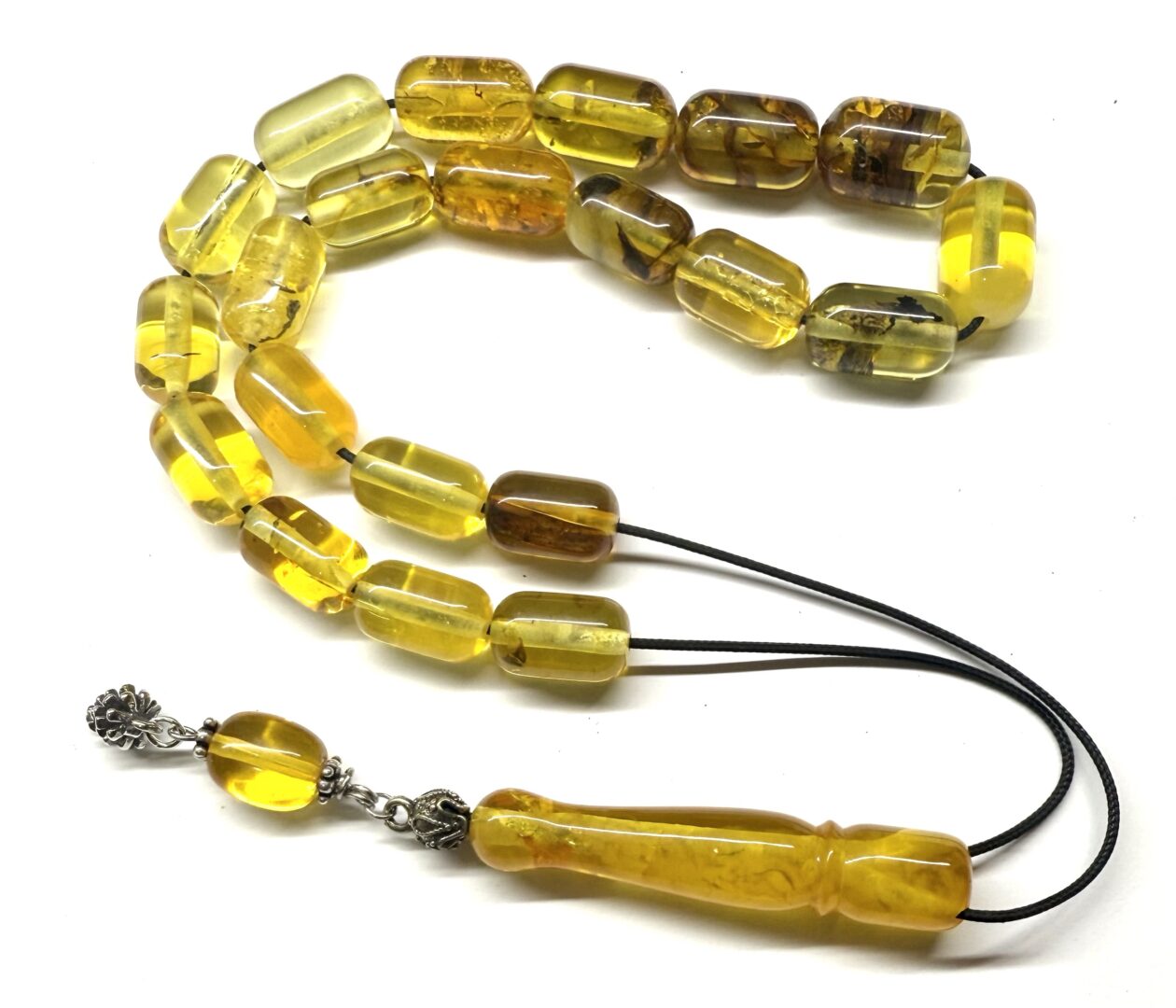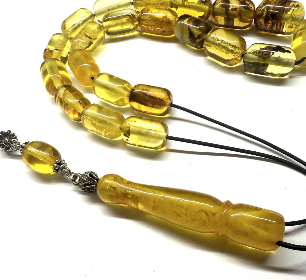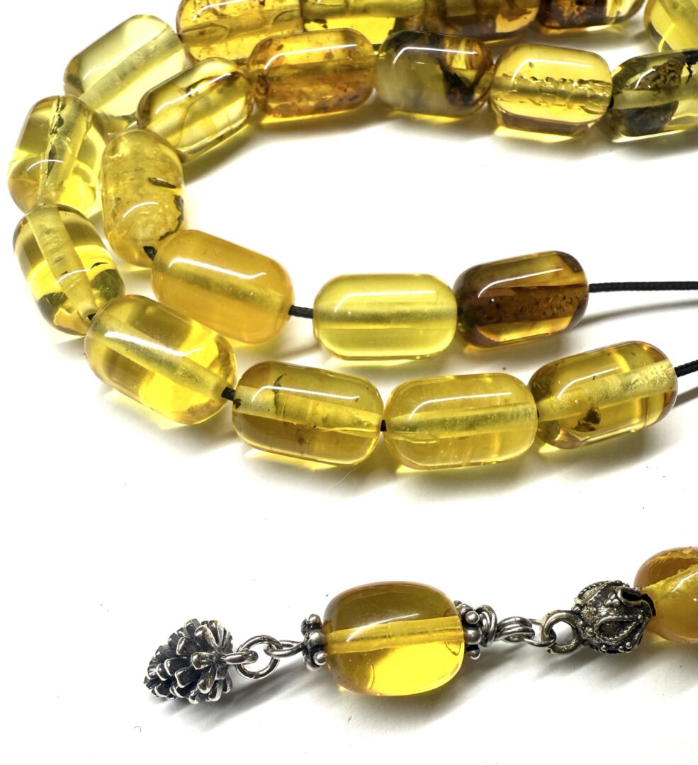 Χειροποίητο κομπολόι από ατόφιο Κεχριμπάρι Βαλτικής διαυγές σε σχήμα βαρελάκι.
