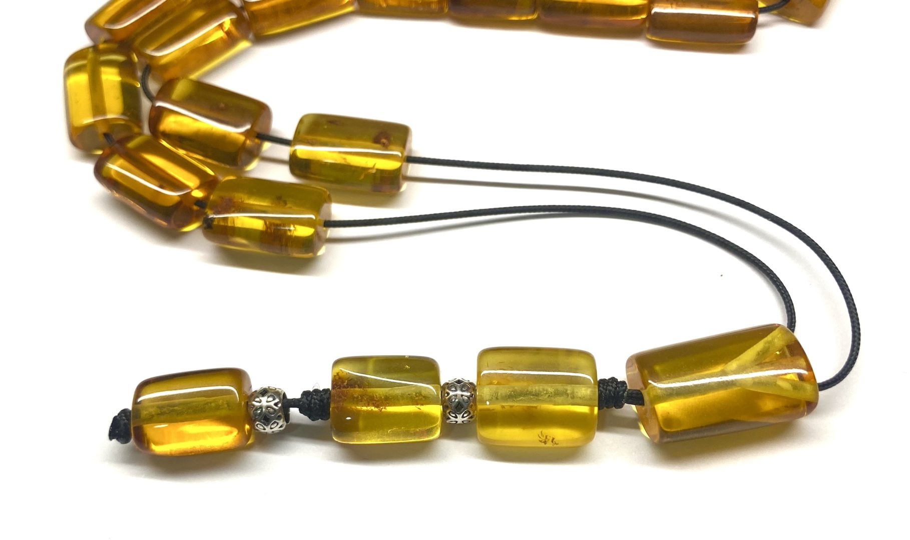 Χειροποίητο κομπολόι από ατόφιο Κεχριμπάρι Βαλτικής διαυγές κονιάκ χειροποίητης κοπής .
