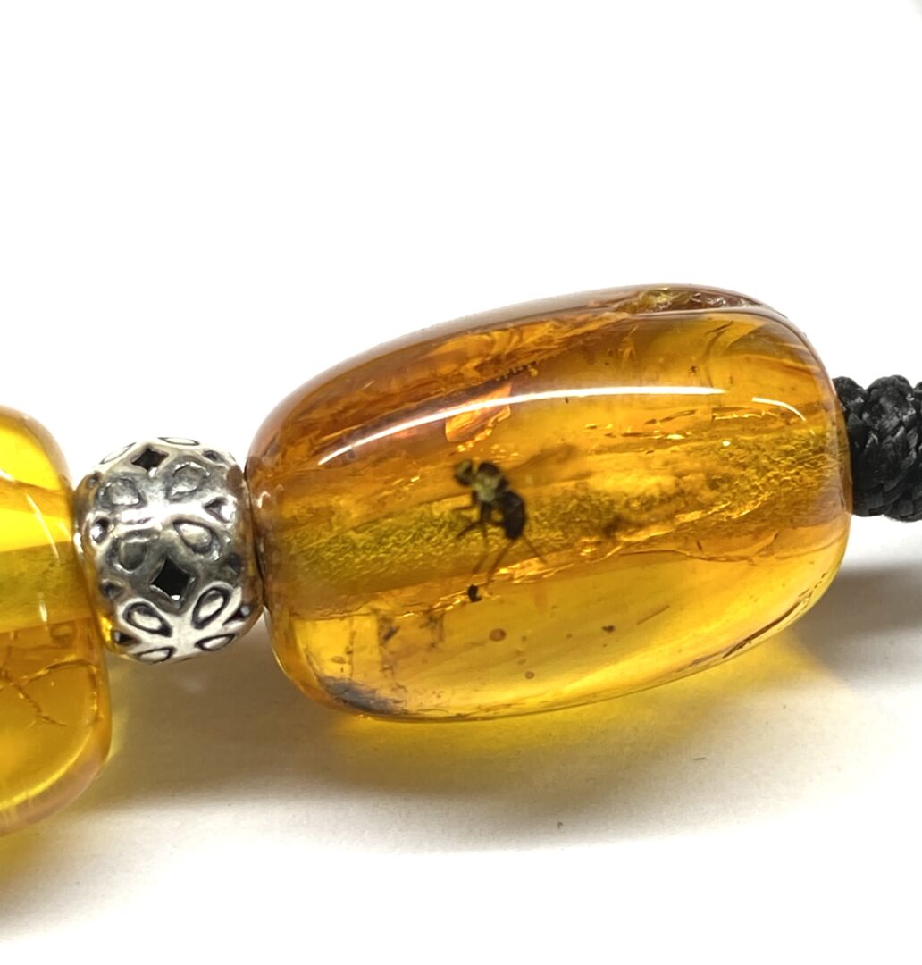 Η μία χάντρα στο τελείωμα του κομπολογιού φέρει εσώκλειστο έντομο .