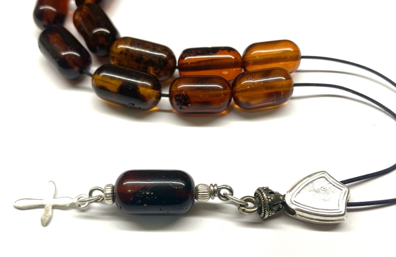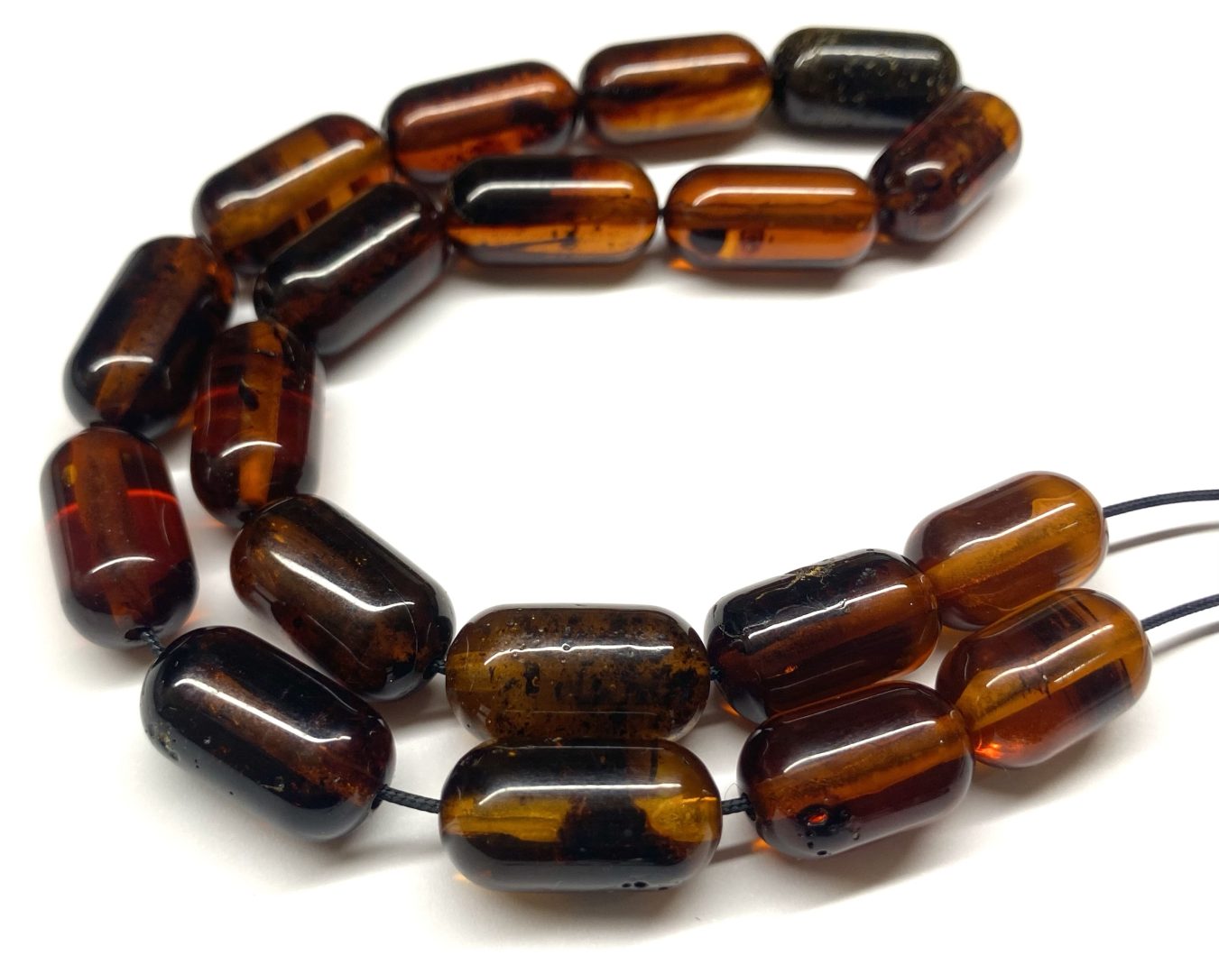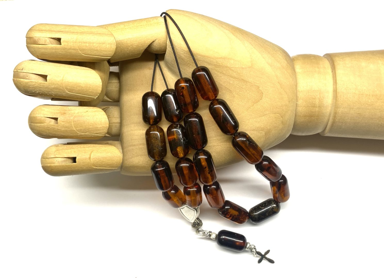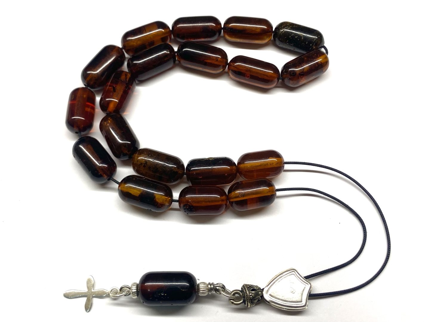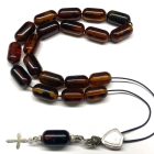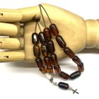 Χειροποίητο κομπολόι από ατόφιο Κεχριμπάρι Βαλτικής σκούρο κονιάκ σε σχήμα βαρελάκι .
