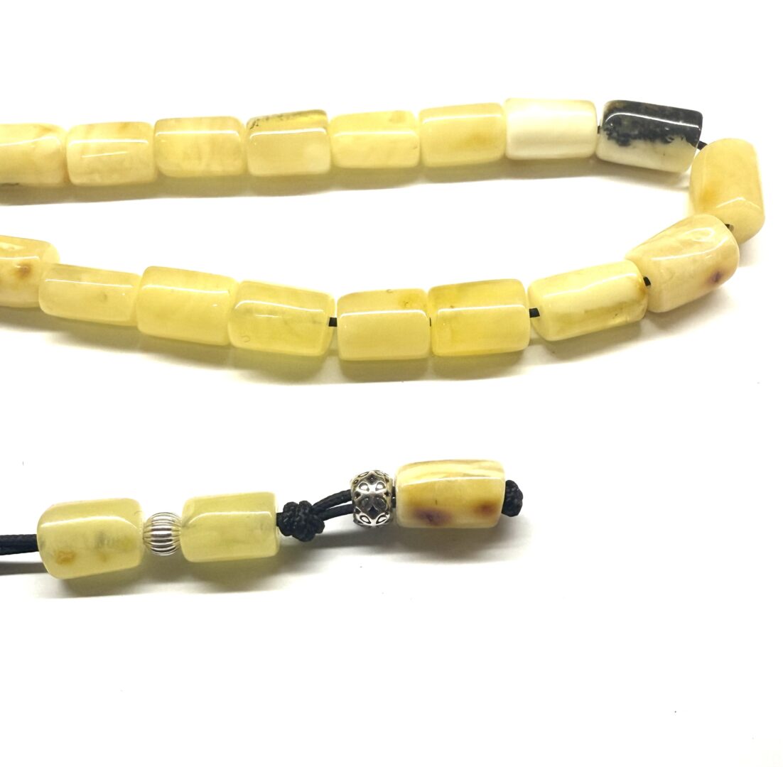 Χειροποίητο κομπολόι από ατόφιο Κεχριμπάρι Βαλτικής Βασιλικό χειροποίητης κοπής σωληνάκι .