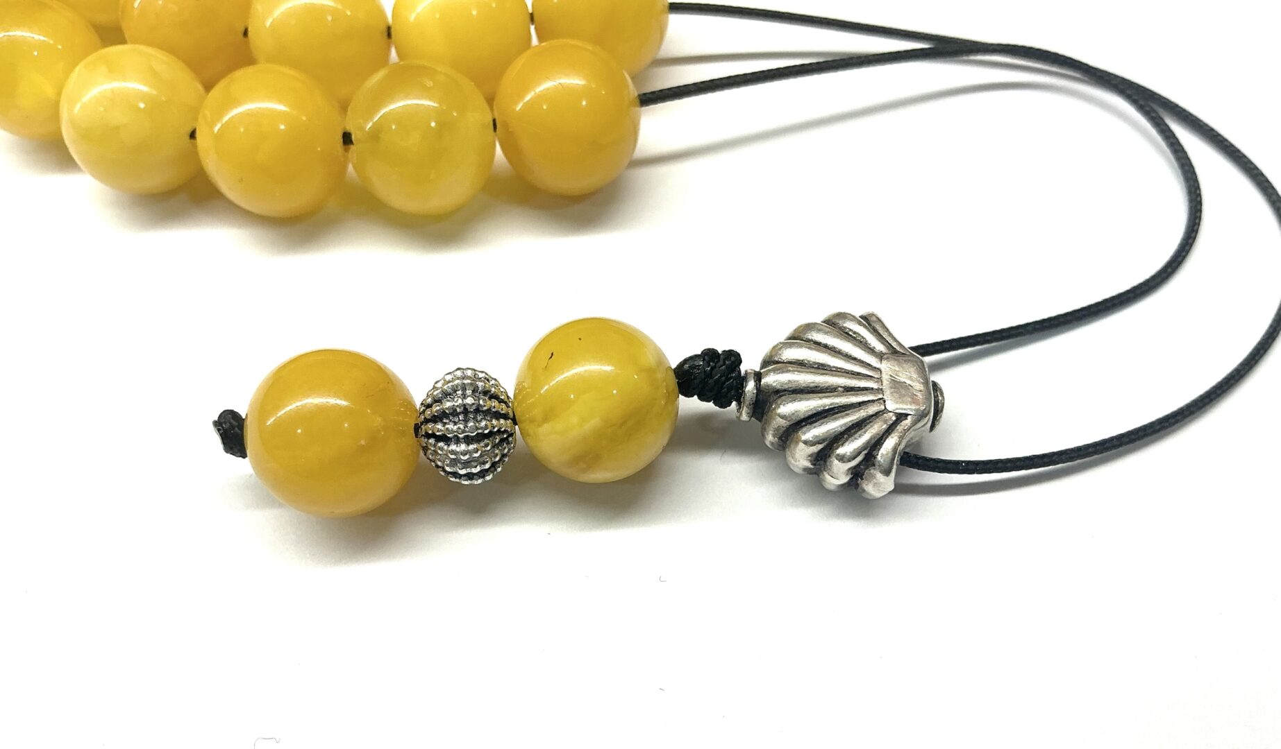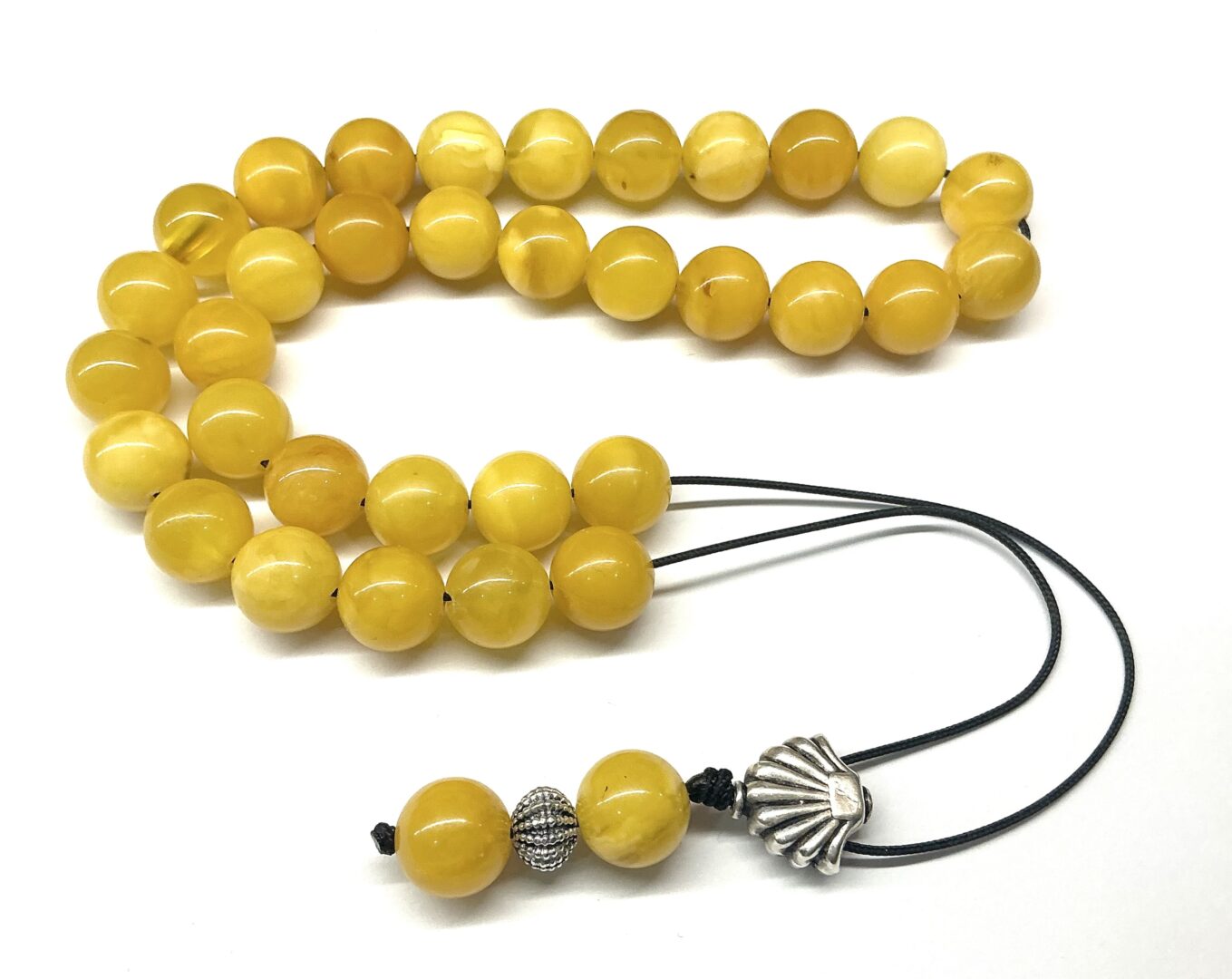 Χειροποίητο κομπολόι 33άρι από ατόφιο Κεχριμπάρι Βασιλικό στρογγυλό .