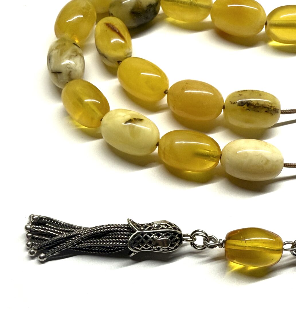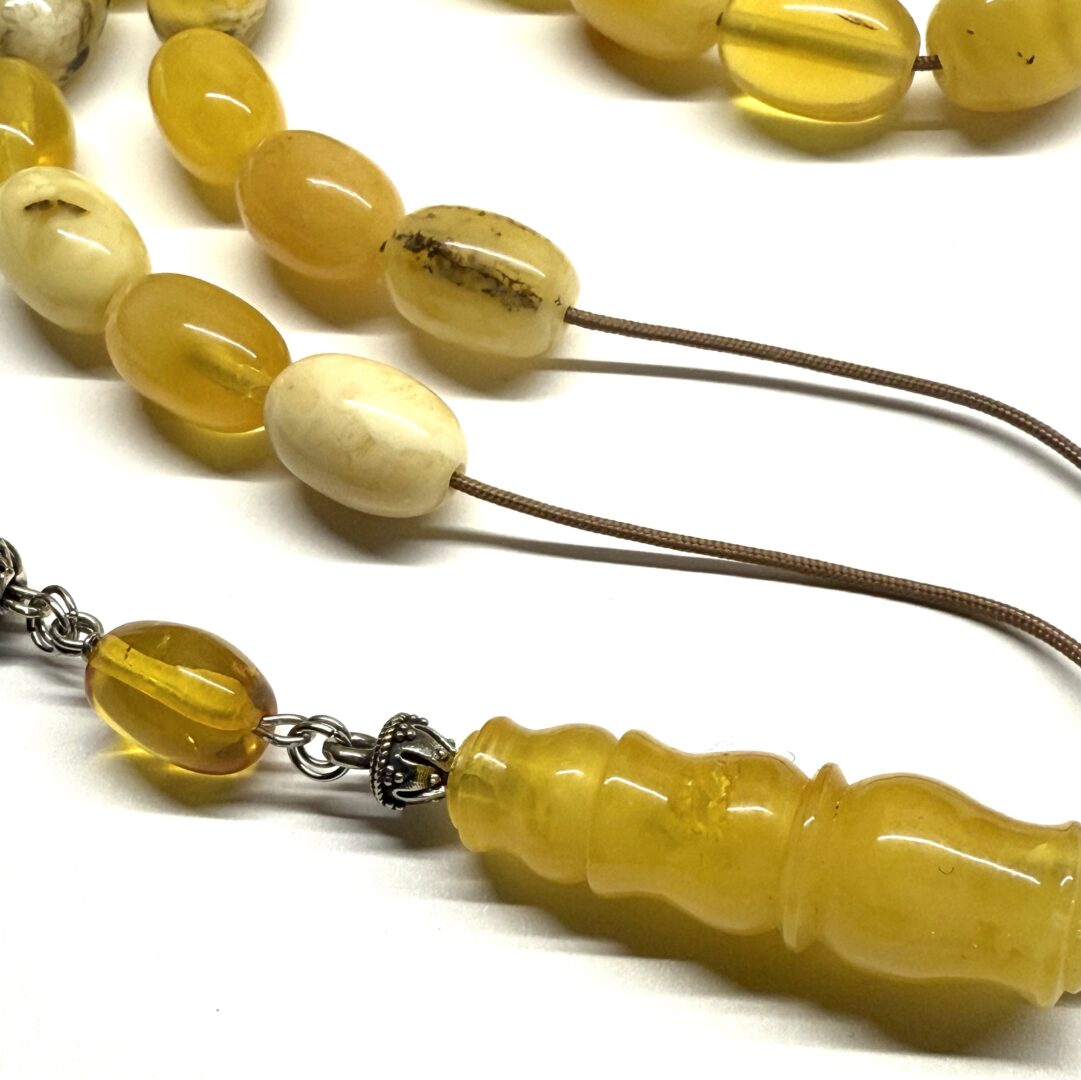 Χειροποίητο κομπολόι από ατόφιο Κεχριμπάρι Βαλτικής Βασιλικό σε μια αρκετά μεγάλη διάσταση χάντρας.