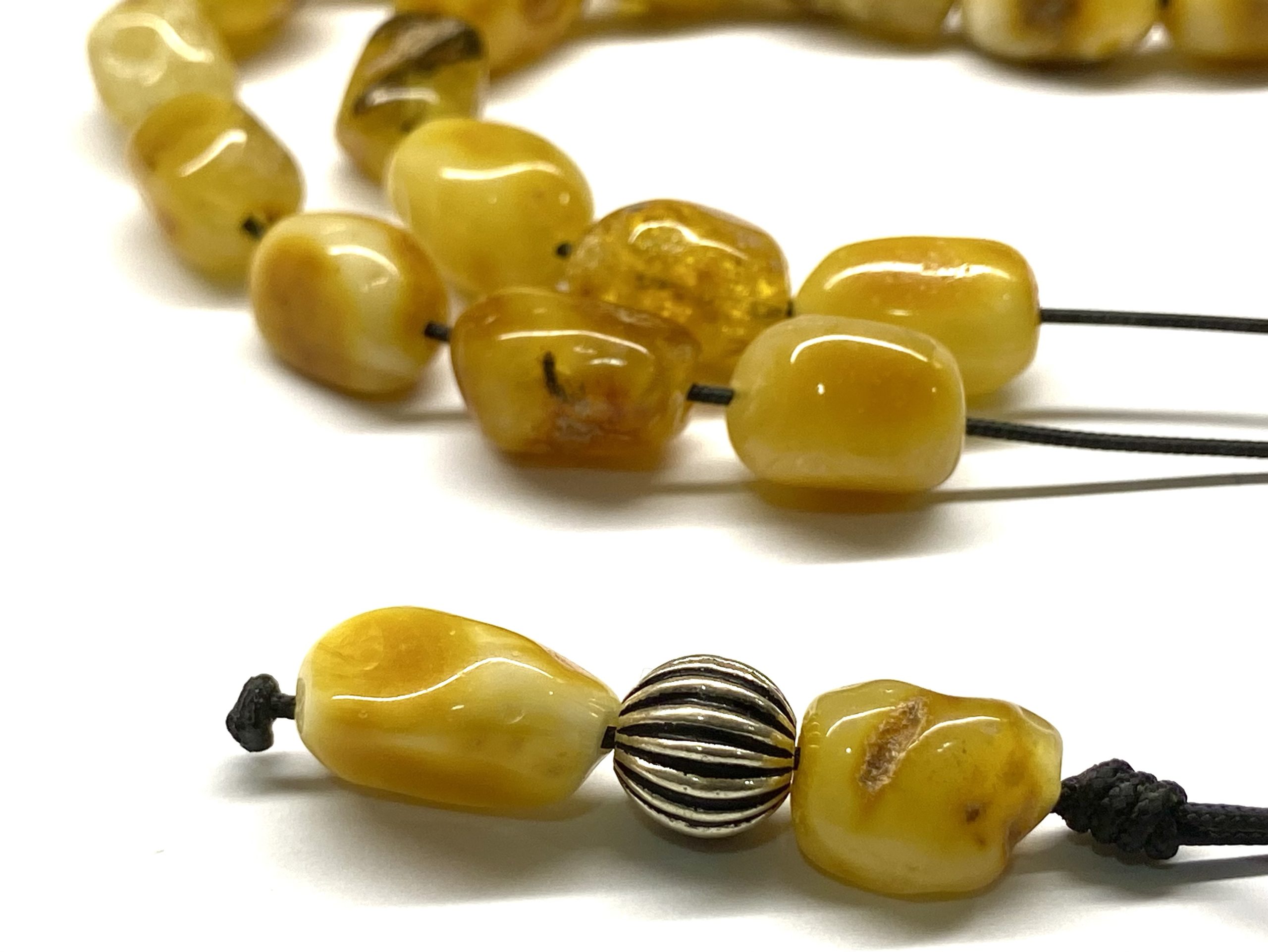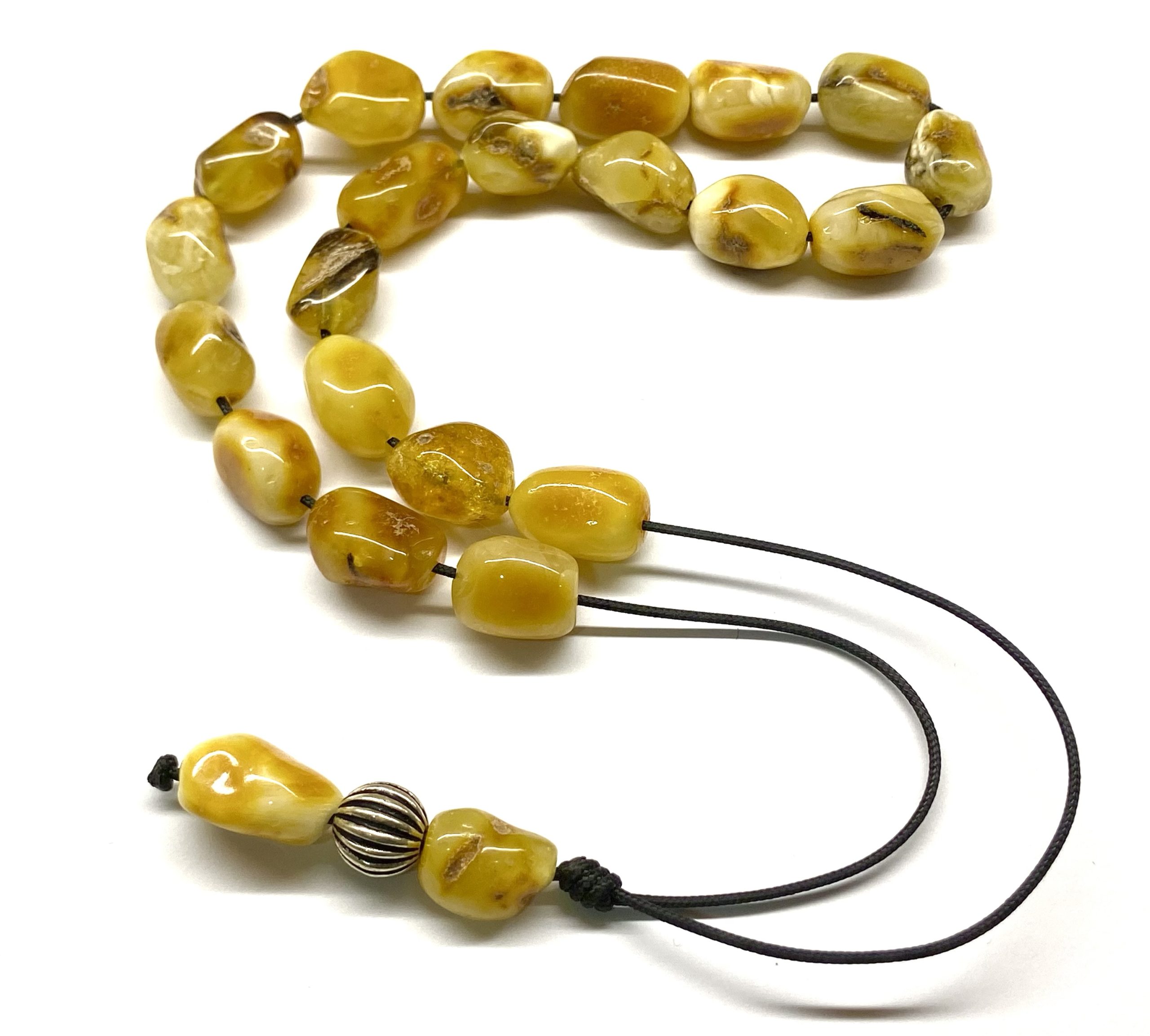 Χειροποίητο κομπολόι από ατόφιο Κεχριμπάρι Βασιλικό χειροποίητης κοπής βότσαλο.