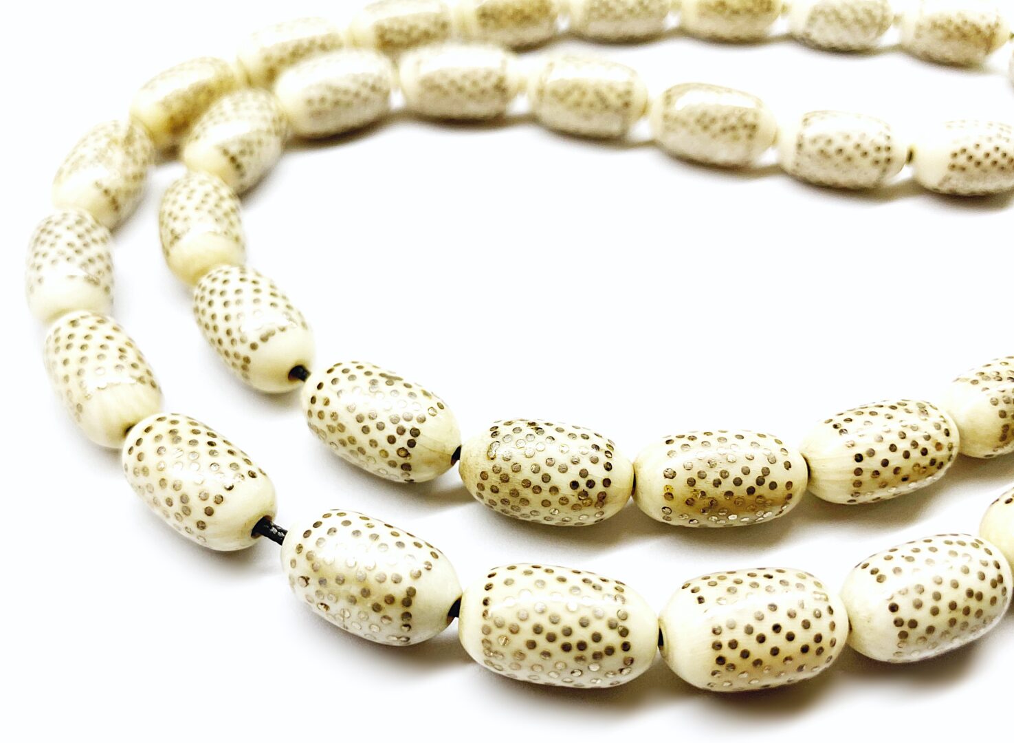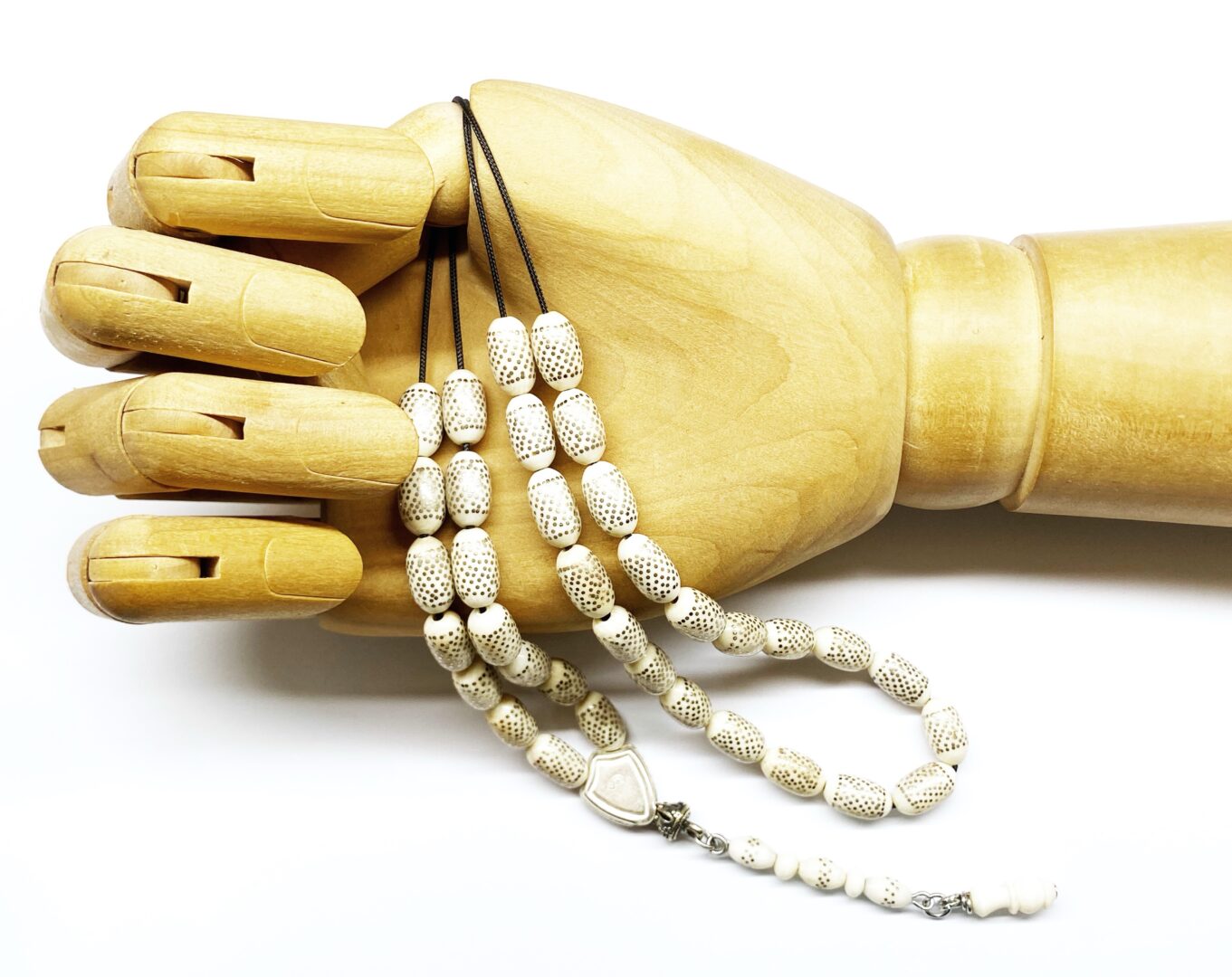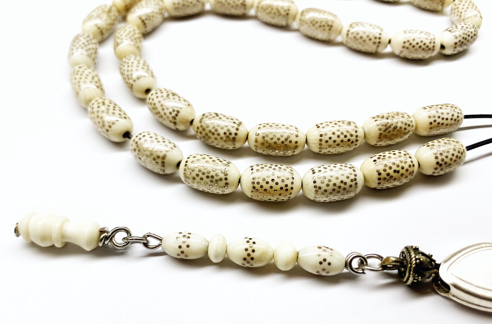 Χειροποίητο κομπολόι με 35 χάντρες από Ελεφαντόδοντο κεντημένο με ασήμι .