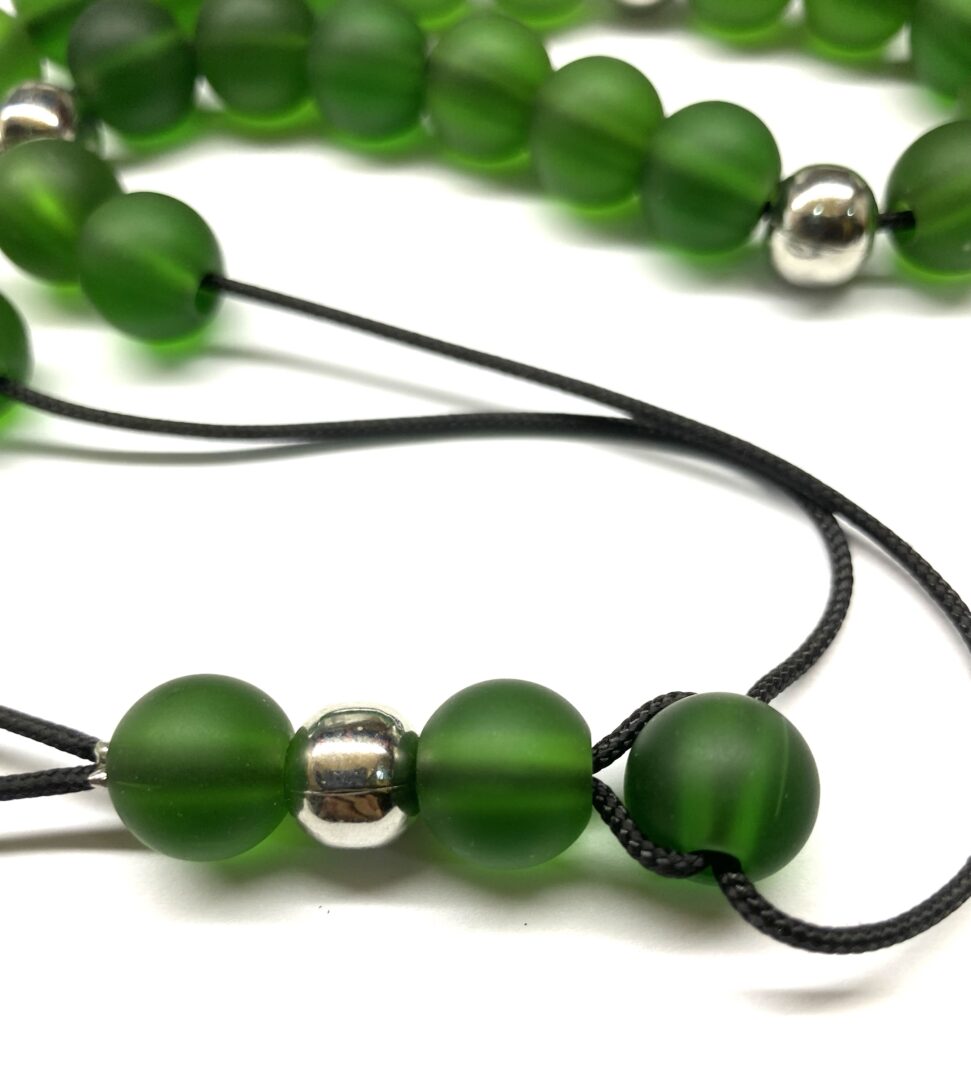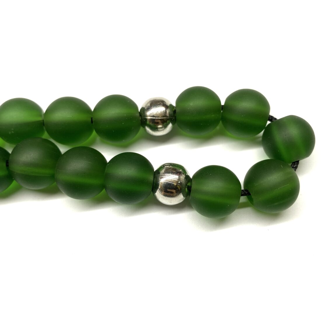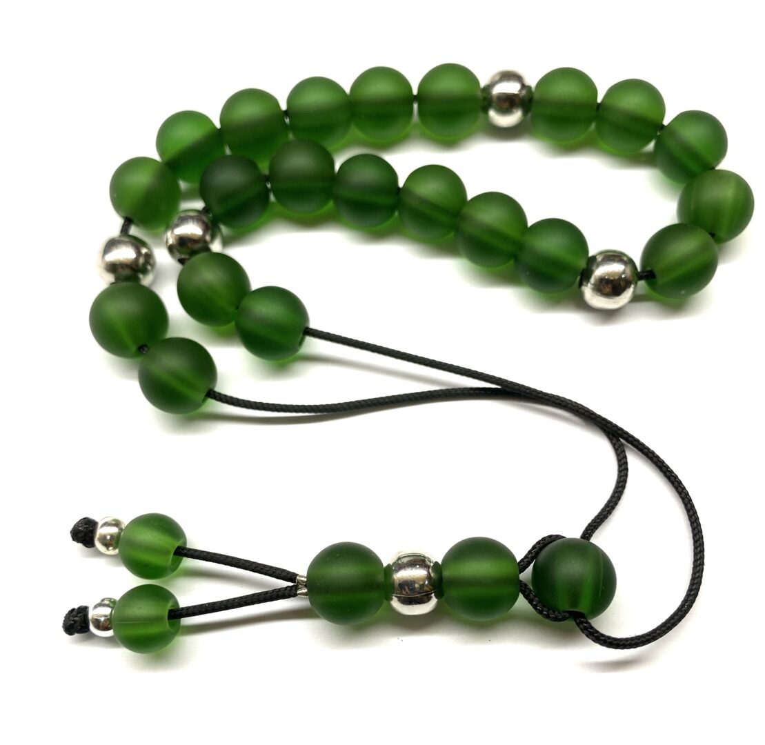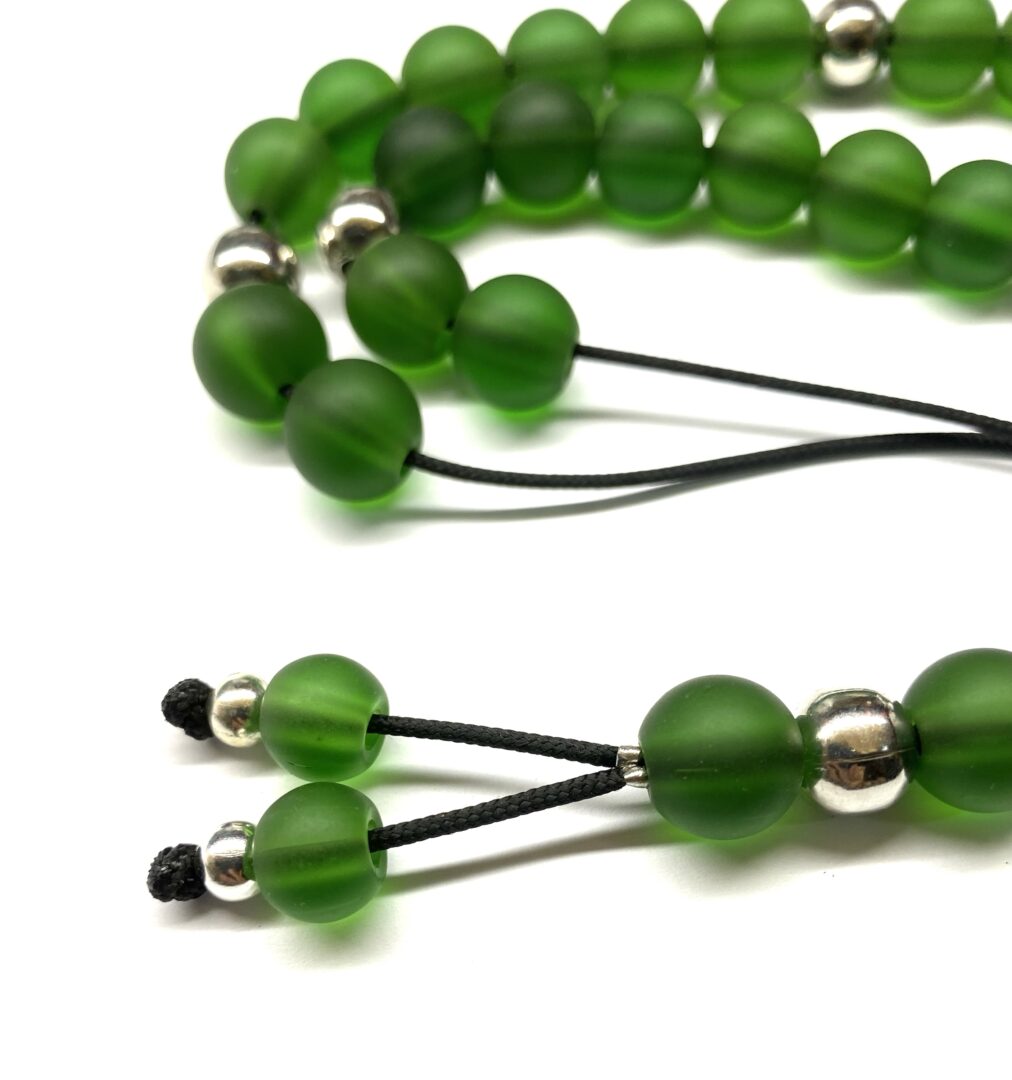 Χειροποίητο κομπολόι από ειδικά επεξεργασμένο γυαλί Τσεχίας πράσινο ματ.