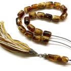 Το κεχριμπάρι είναι το πιο γνωστό και πολύτιμο υλικό κομπολογιού. Το δημιουργεί η φύση από το ρετσίνι των κωνοφόρων δέντρων αφού περάσουν 30 εκατομμύρια χρόνια ώστε να απολιθωθεί. Οι αρχαίοι πίστευαν στην θετική ενέργεια που δίνει αλλά και στις θεραπευτικές του ιδιότητες. Ο Αριστοτέλης μελετώντας το, κατέληξε στο συμπέρασμα ότι ήταν έμψυχο. Ένα από τα πιο γνωστά κεχριμπάρια είναι της Βαλτικής το οποίο αναδύεται από τον πυθμένα στον αφρό της βαλτικής θάλασσας. Αυτό συμβαίνει γιατί στην θάλασσα υπάρχει κάποιο προϊστορικό δάσος. Το κομπολόι από κεχριμπάρι δίνει ένα ζεστό παίξιμο με όμορφο διακριτικό ήχο και όταν ζεσταθεί αναδύει το άρωμα του ρετσινιού. Τα κομπολόγια από ατόφιο Κεχριμπάρι δεν ενδείκνυται για έντονο μπεγλερισμα, ενώ τα κομπολόγια από πρεσαριστό Κεχριμπάρι είναι κάπως πιο ανθεκτικά.