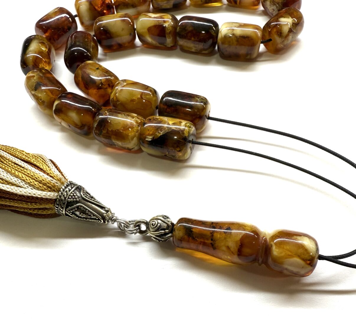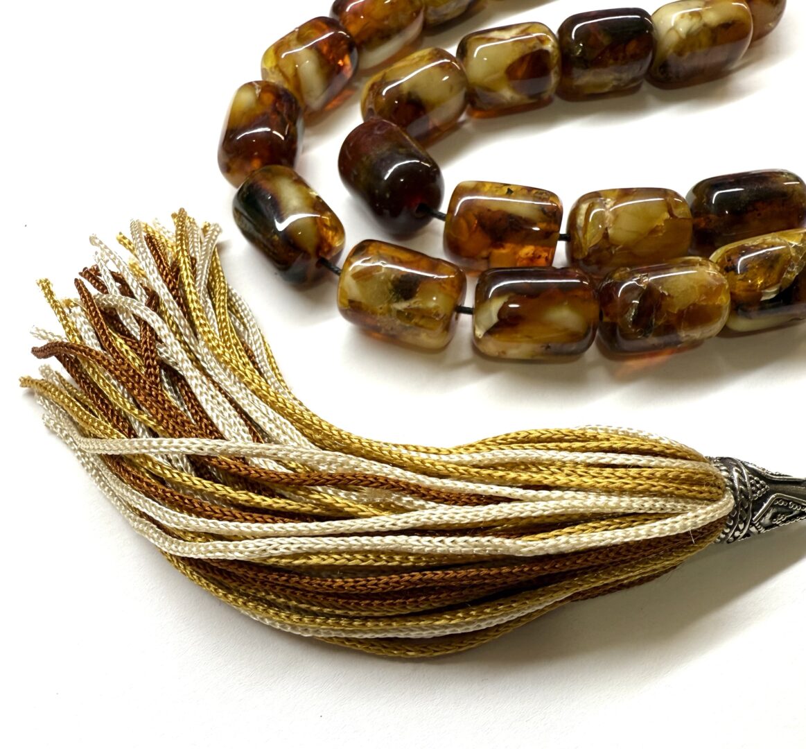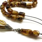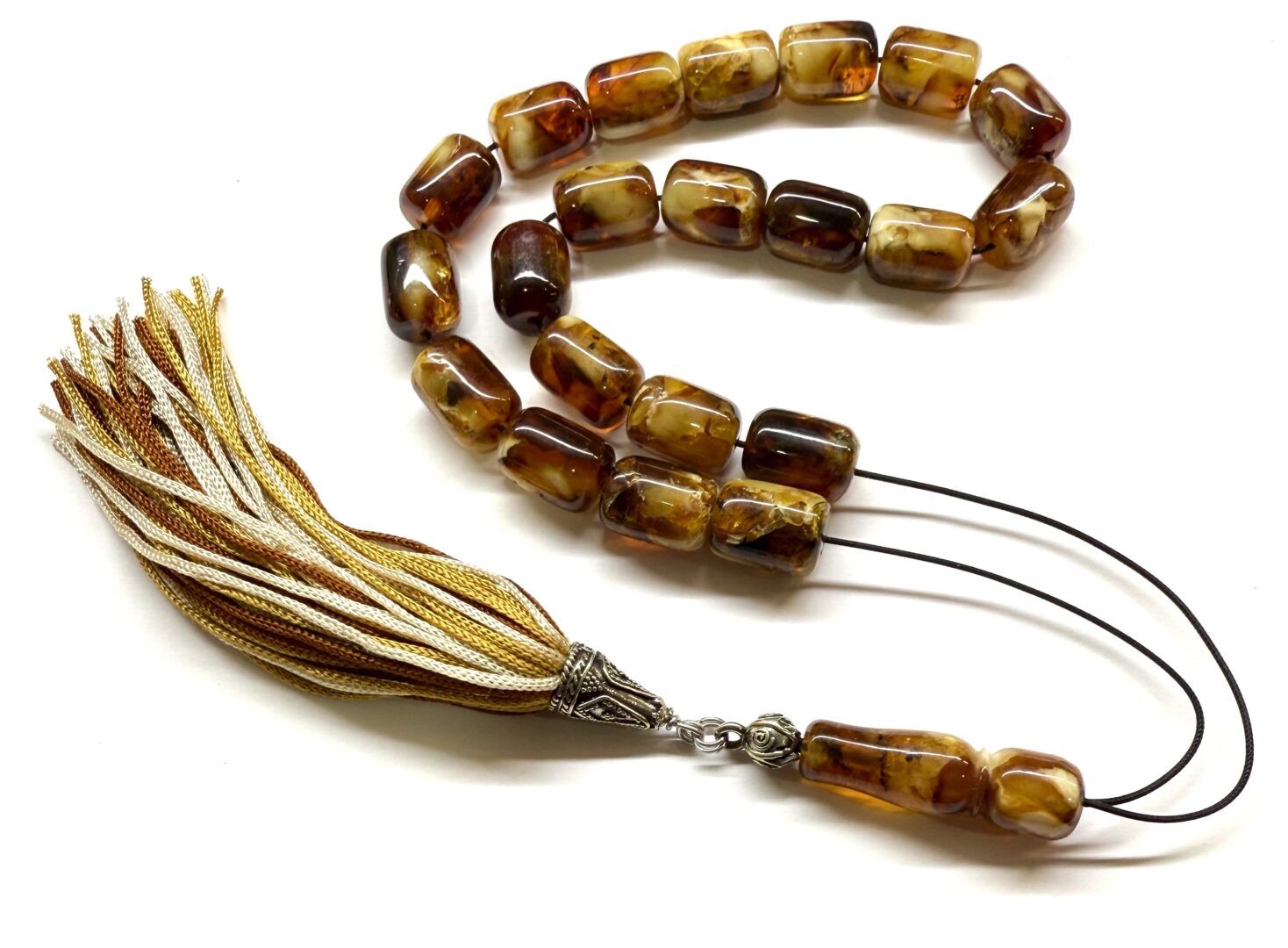 Χειροποίητο κομπολόι από Κεχριμπάρι πρεσαριστό διαυγές και βασιλικό με περιεκτικότητα σκόνης κεχριμπαριού 90%
