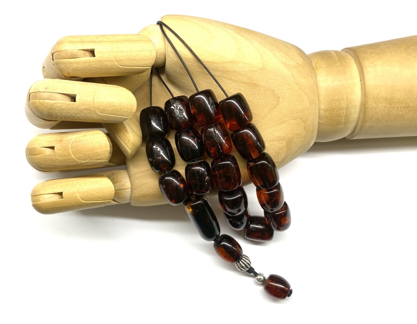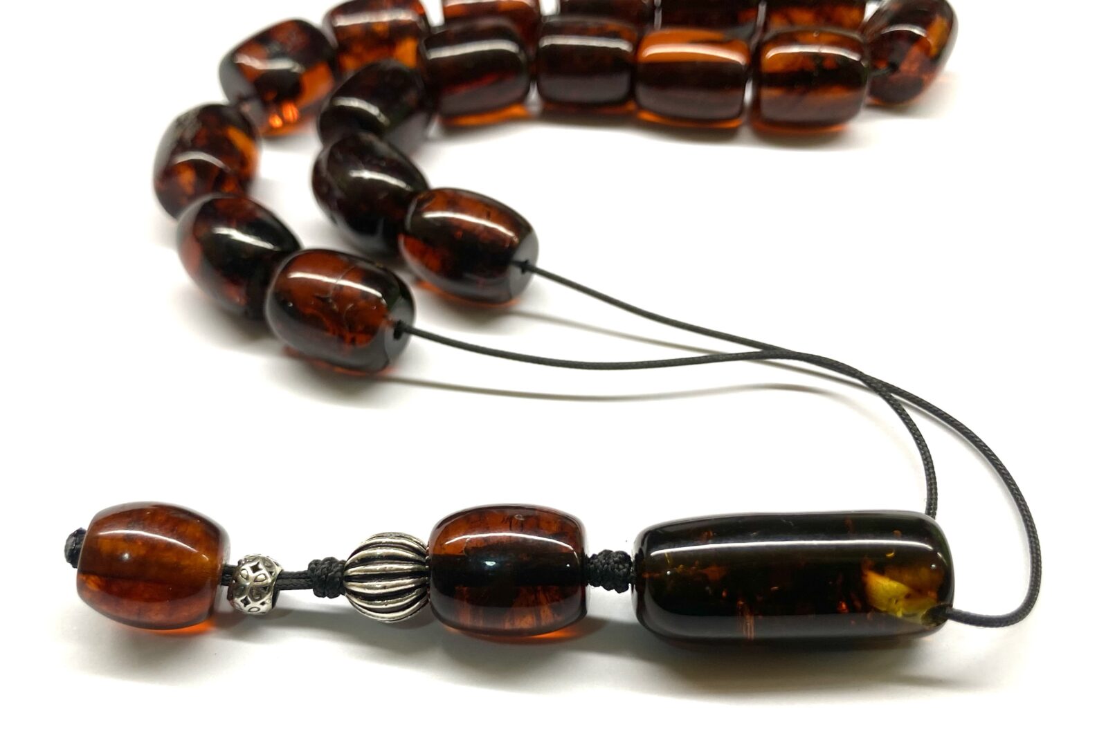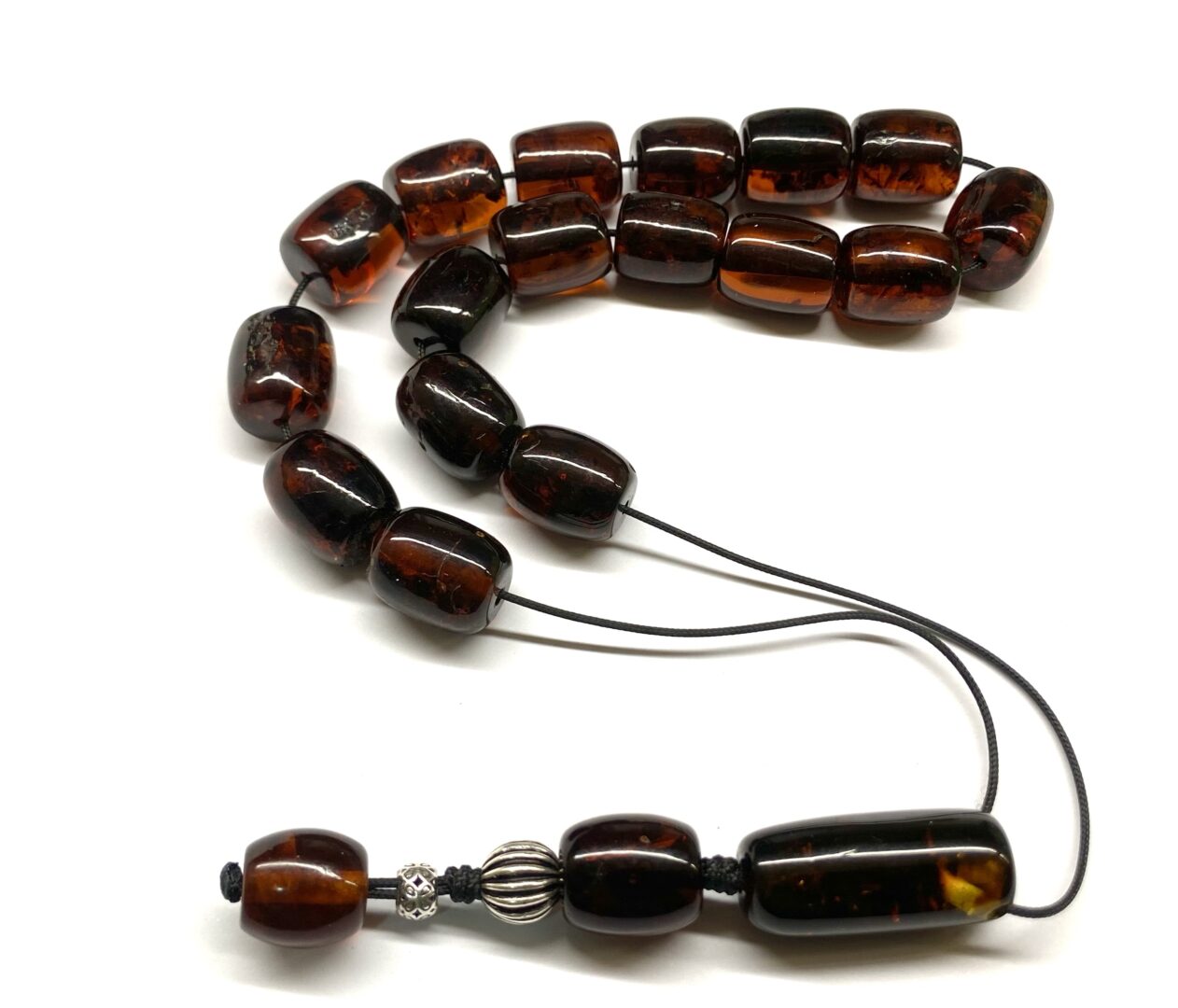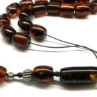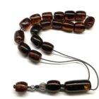 Χειροποίητο κομπολόι από Κεχριμπάρι πρεσαριστό με περιεκτικότητα σκόνης κεχριμπαριού 90% σε σκούρο κονιάκ τόνο .