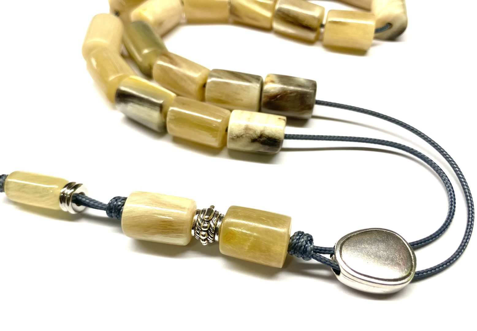 Χειροποίητο κομπολόι από κέρατο κατσίκας σε σχήμα βαρελάκι .