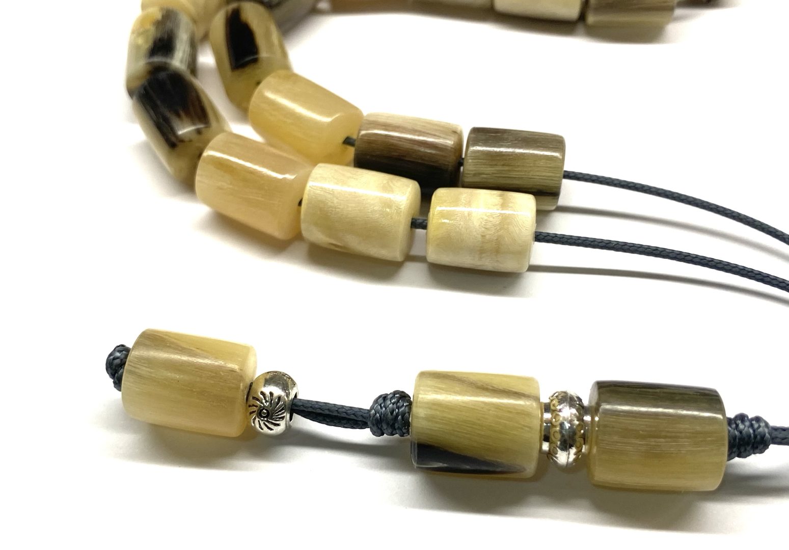 Χειροποίητο κομπολόι από κέρατο κατσίκας σε σχήμα βαρελάκι .