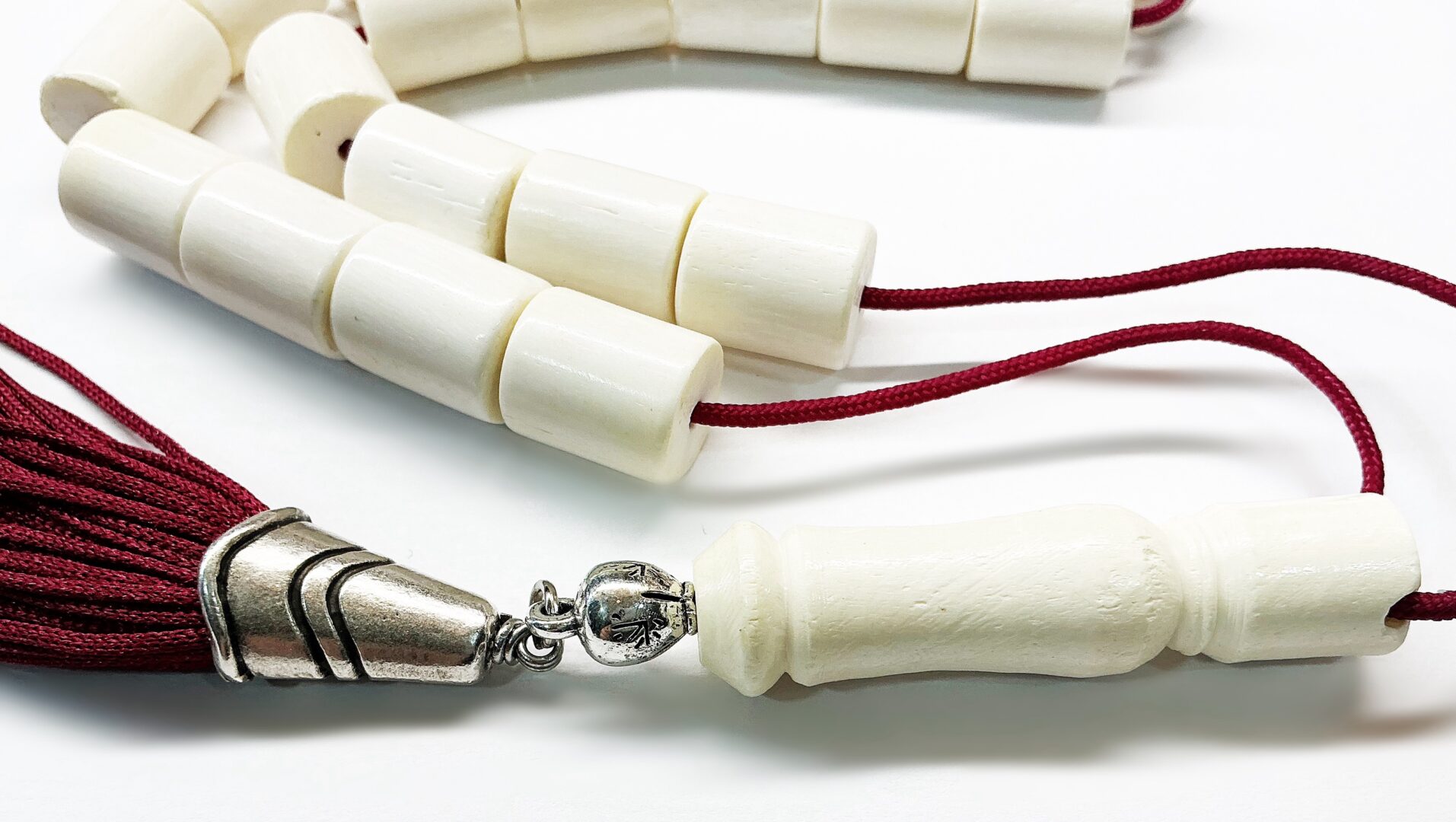 Χειροποίητο κομπολόι από κόκκαλο καμήλας σε σχήμα σωληνάκι .