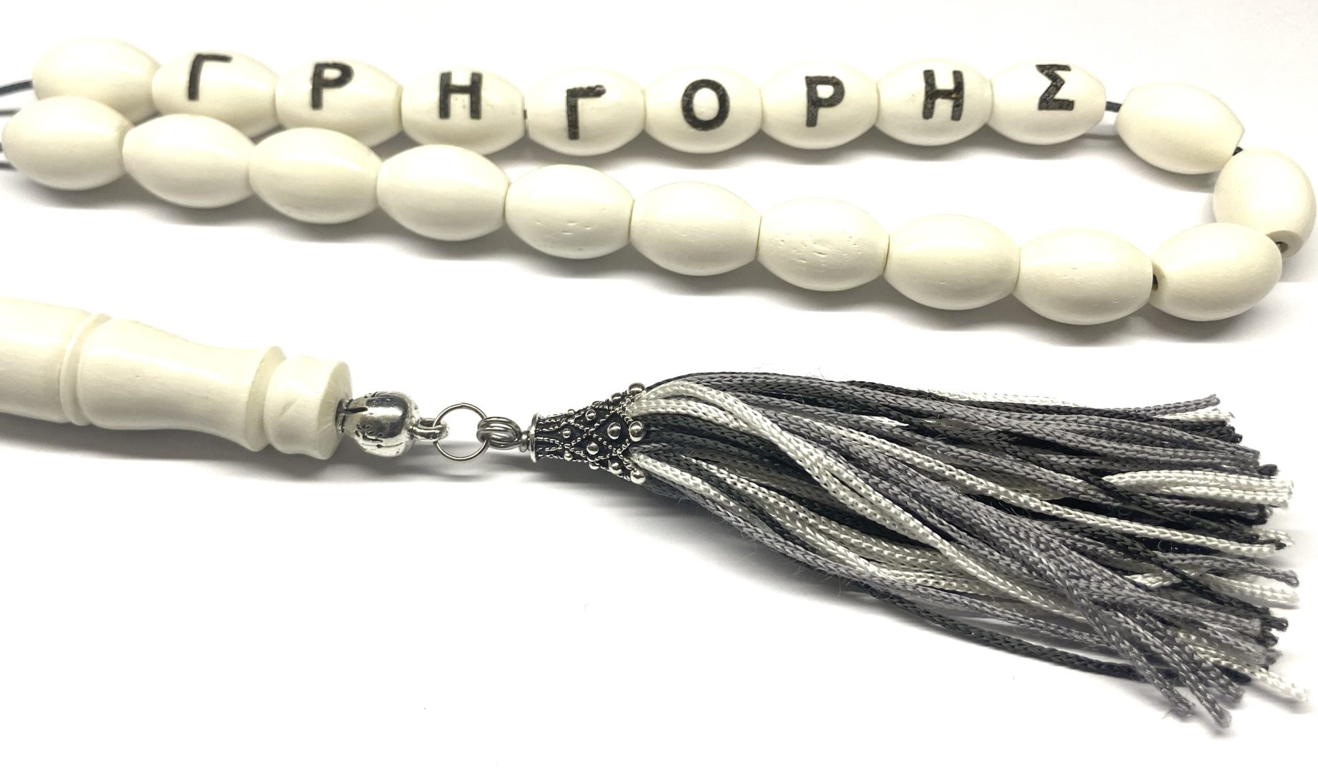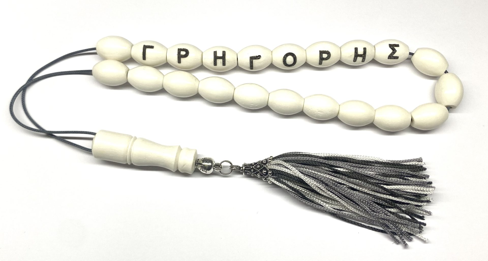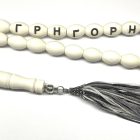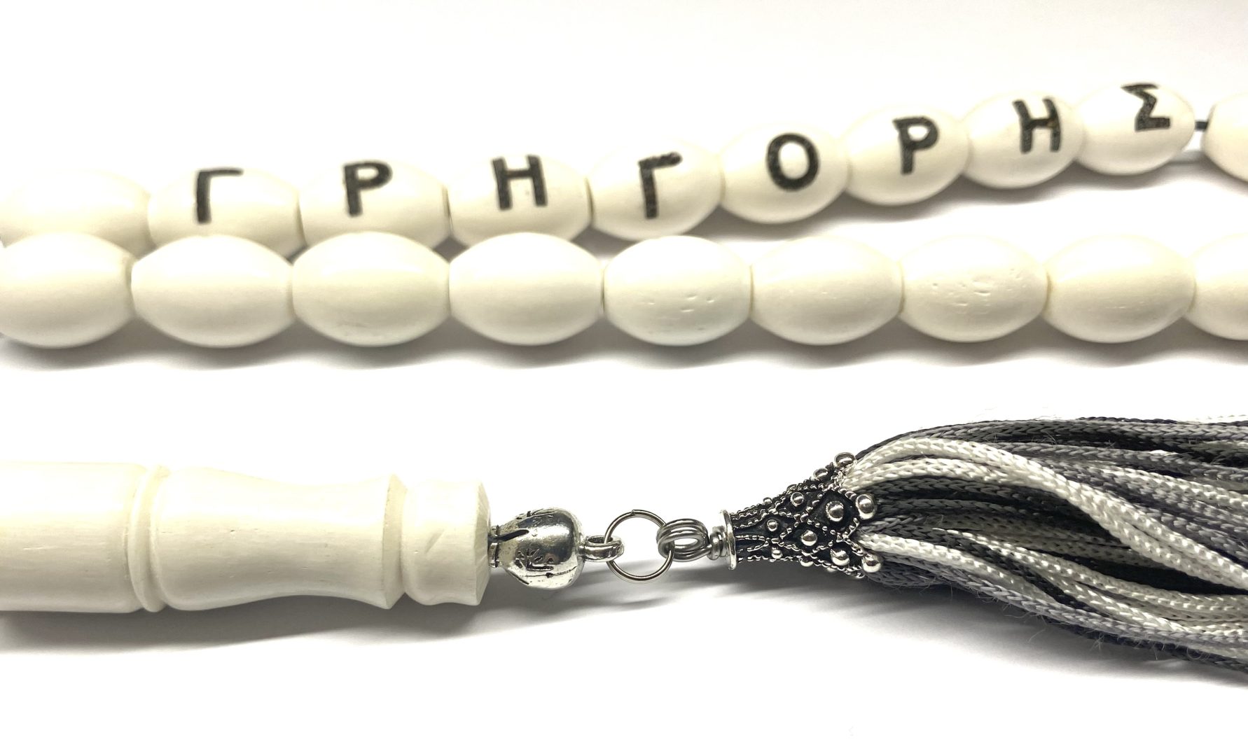 Χειροποίητο κομπολόι από κόκκαλο καμήλας σε σχήμα ελιά με χάραξη δικής σας επιλογής .